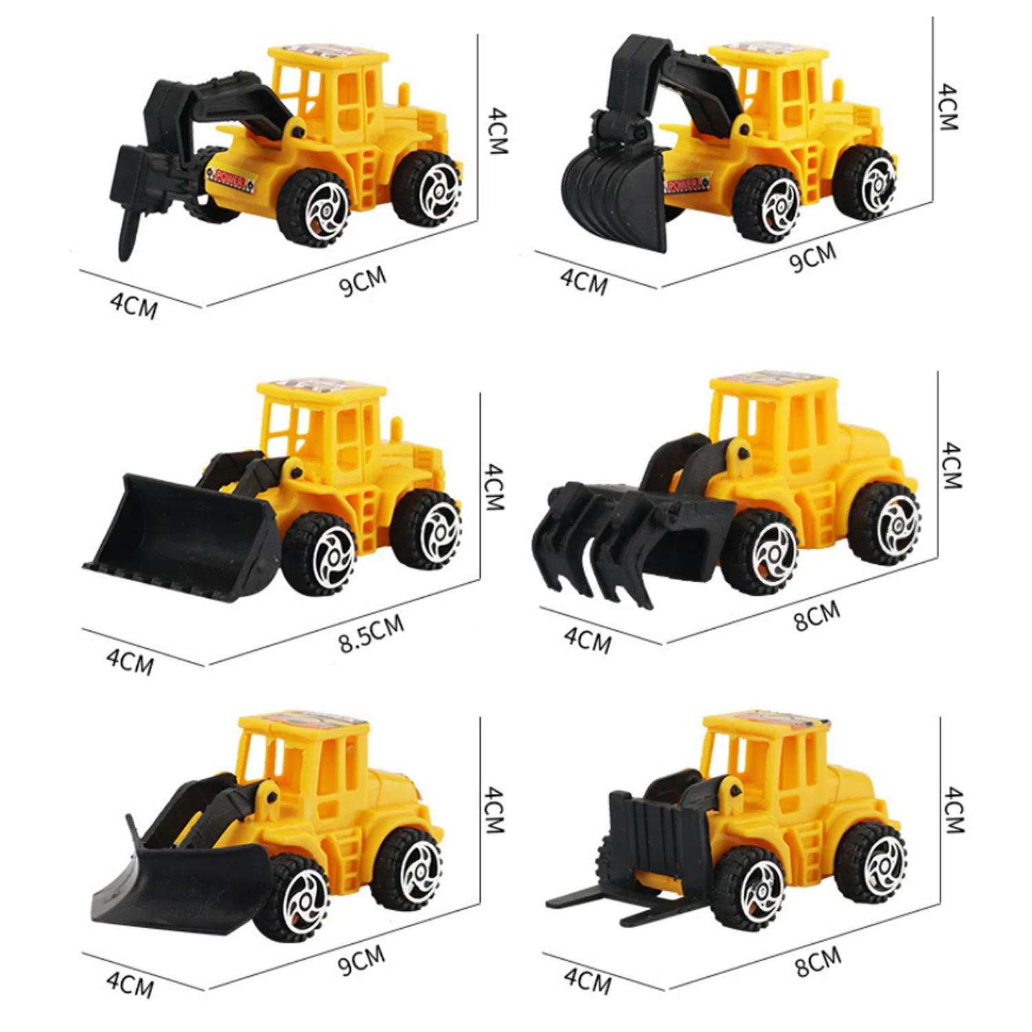 GREAT VEHICLES: 6 Engineering vehicles, including earth-moving vehicles, excavation vehicles, bulldozers, excavation vehicles, forklifts, forklifts. Each car is made of abs material, which is of high quality and strong and resistant to falling.