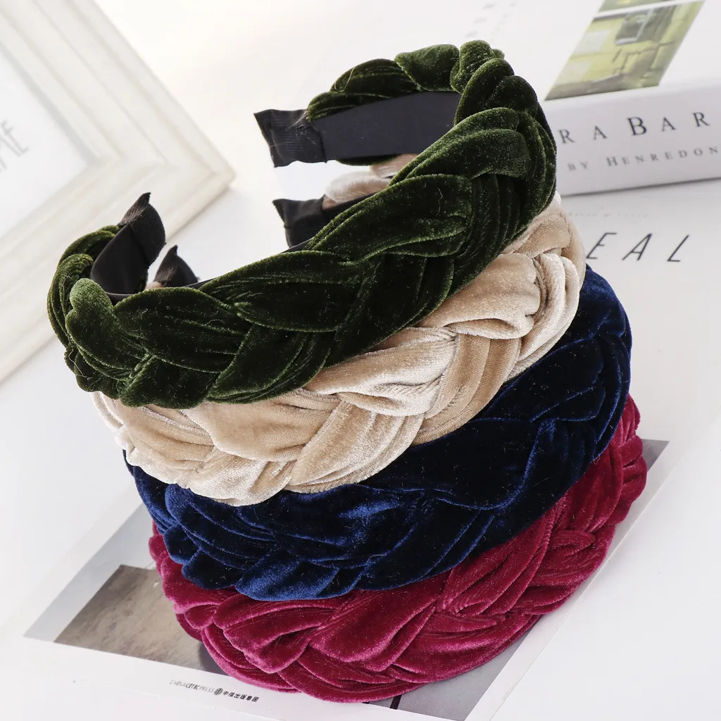 Модные женские Однотонные резинки для волос бархатная плетеная повязка для волос женская обруч для волос милая повязка для волос для девочек 2019 femme haarbanden 03 *