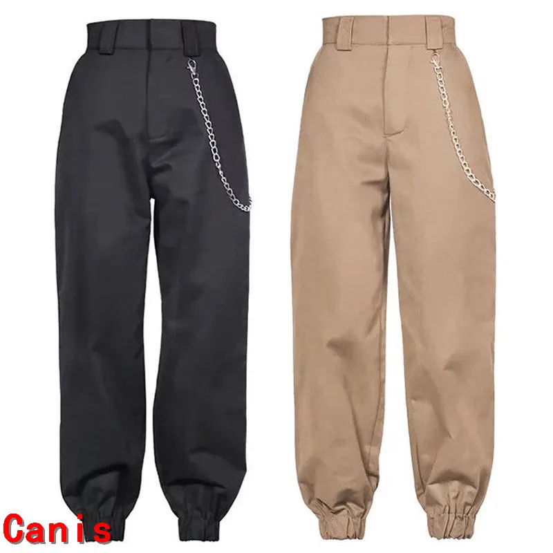Новые женские шаровары с высокой талией и цепочкой в стиле хип-хоп, брюки-шаровары, брюки, женские брюки, брюки в стиле Харадзюку, уличная одежда