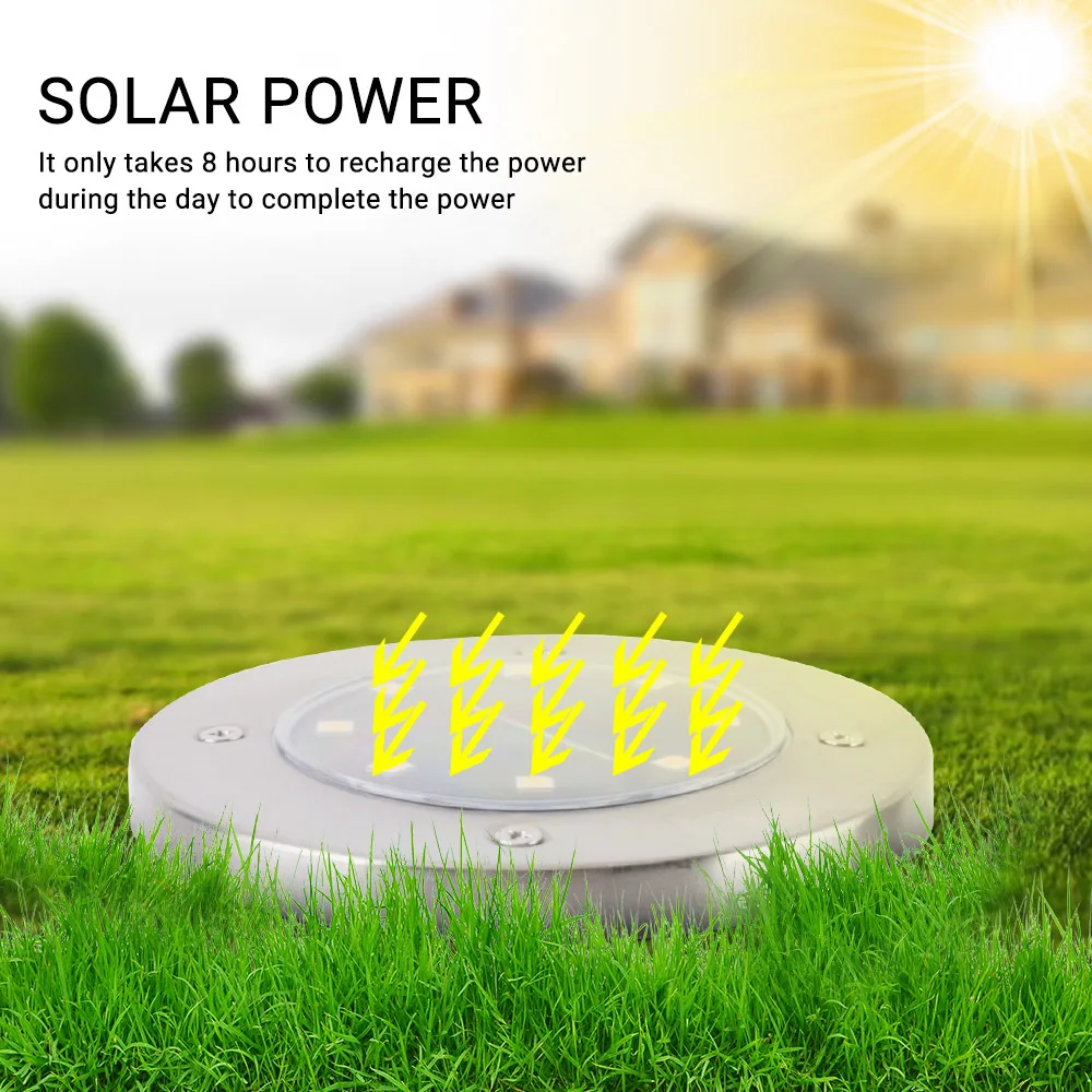 Модернизированные светодиодные лампы для сада и лужайки. Прочная и стильная отделка из нержавеющей стали. Наземный светильник на солнечной батарее. Проводка не требуется и безопасна для использования вокруг детей и домашних животных идеально подходит для районов, где обычные электрические поставки не доступны