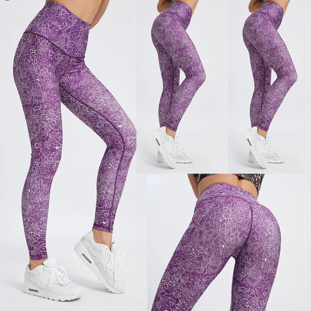 Женские облегающие спортивные штаны для йоги с высокой талией и принтом, спортивные Леггинсы для фитнеса