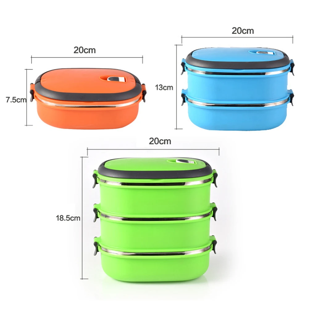 1/2/3 Слои прямоугольный из нержавеющей стали Термальность Коробки для обедов Еда контейнер для хранения