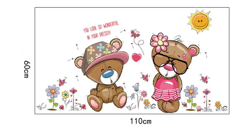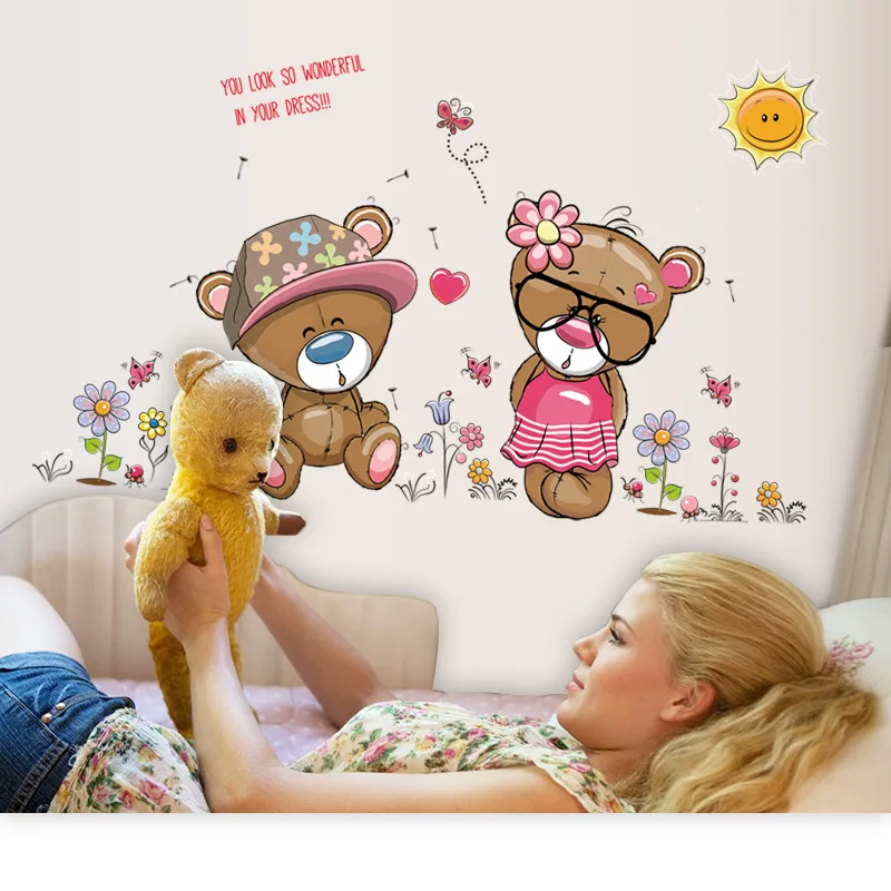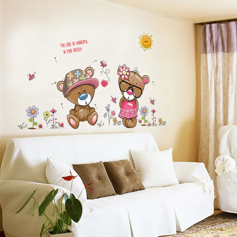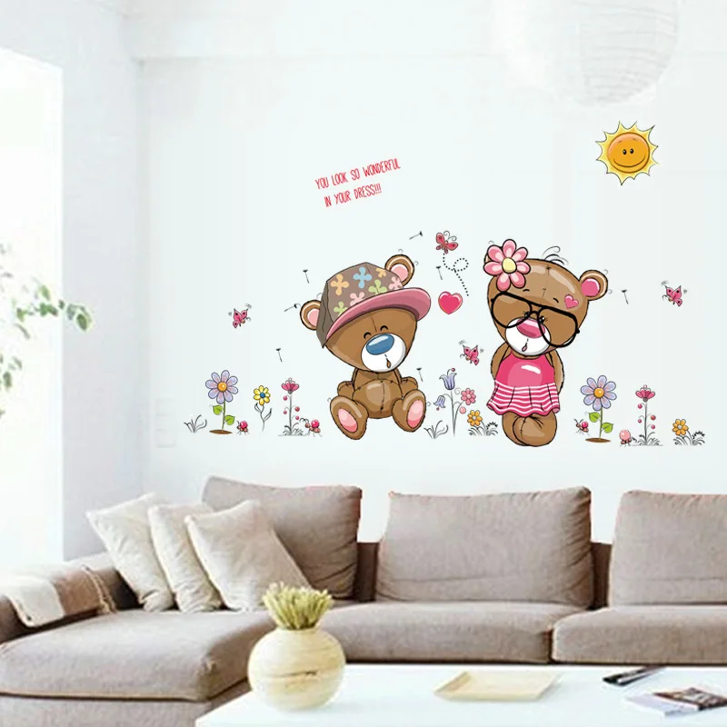 Милый медведь, детская комната, детский сад, настенное украшение, настенное украшение для спальни, гостиной, настенные наклейки, обои