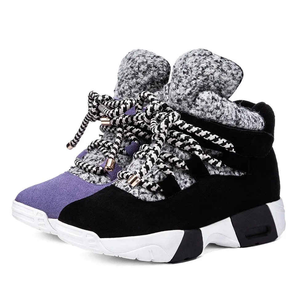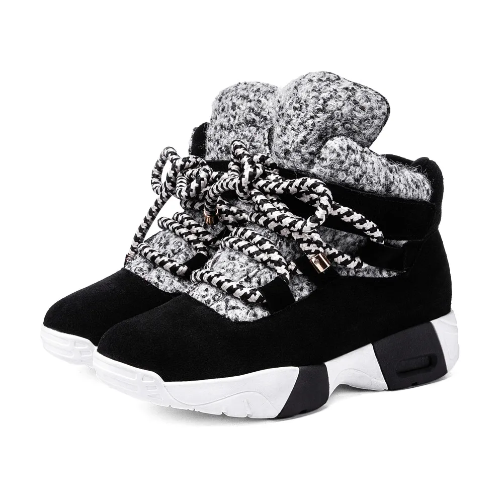 Новейшая модель; Ботильоны из коровьей замши; Теплые ботинки на шнуровке; Сезон осень-зима; Модные женские кроссовки с круглым носком; Обувь на толстой подошве; Aiyoway