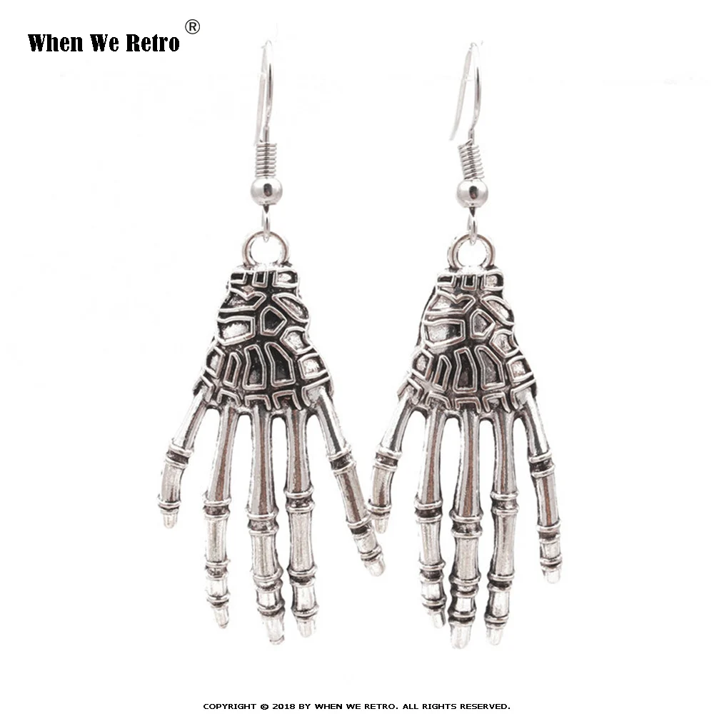 Когда мы ретро новый панк стиль корейский милый череп скелета на Хэллоуин ручная кость усов паук Сова серьги для подарков Haloween QY0528