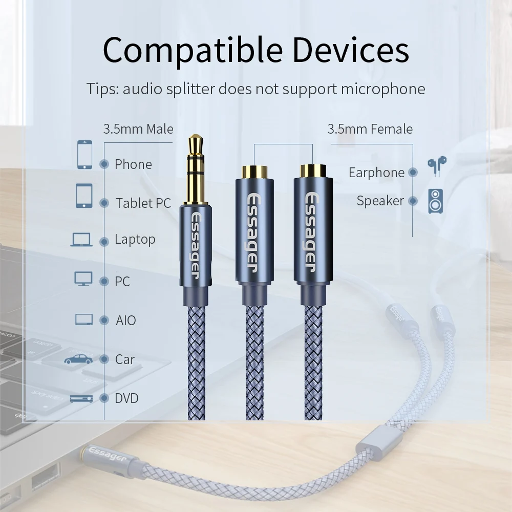 AUX аудио кабель 3,5 мм штекер 2 гнездовой разъём наушников удлинитель 3,5 Jack аудио кабель