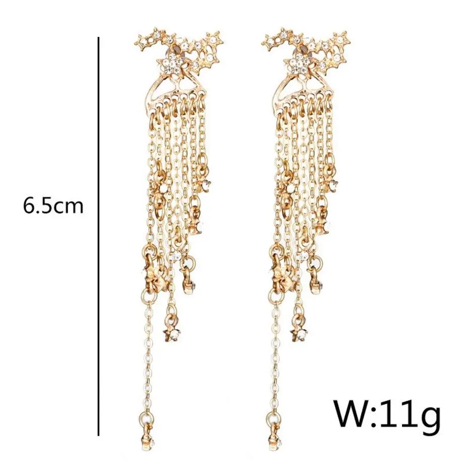 Стрельба кристалл в форме звезды, со стразами длинные кисточки висячие серьги с крючком