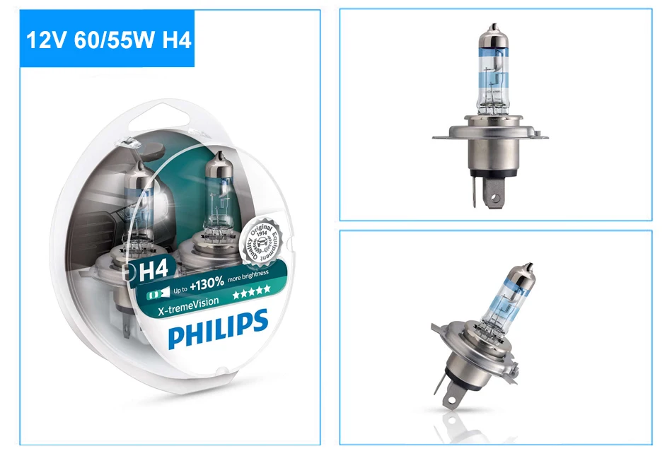 До 130 % более яркий свет Тип лампы: H1,P14,5s/55 W H4,P43t,60/55W H7,PX26d/55 W В упаковке: 2 Больше света Свет значительно белее для большего комфорта и безопасности Яркий белый свет значительно белее света стандартных ламп головного освещения. Запатентованная технология Philips Gradient Coating™ обеспечивает более мощный световой поток. Один из высочайших показателей яркости и невероятный комфорт в темное время суток. Больше срок службы, выше уровень безопасности: лучше видите вы, лучше видят вас Любая потенциальная неисправность запасных частей — это риск для вас и вашего автомобиля. В первую очередь это относится к лампам головного освещения. Одна сломанная лампа сокращает видимость и безопасность для вас и водителей встречного транспорта. Лампы Philips X-tremeVision созданы для долгой и надежной службы. Они гарантируют хороший обзор и видимость на дороге в течение более длительного времени по сравнению с другими лампами высокой производительности. Высокая производительность обеспечивает больше света и продлевает срок службы Лампы головного освещения Philips X-tremeVision отличаются выдающимся качеством работы. Их отличительные характеристики — увеличенная на 130 % яркость света и долгий срок службы. Срок службы до 450 часов* позволяет лампам Philips X-tremeVision занять первое место среди конкурентов (*тестирование моделей H4 и H7 при стандартном напряжении 13,2 В).