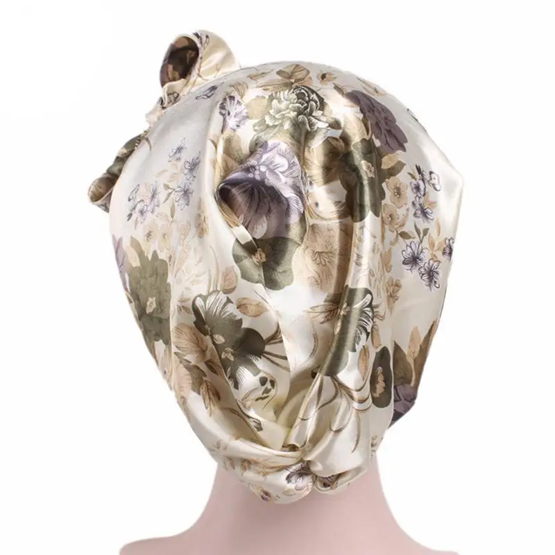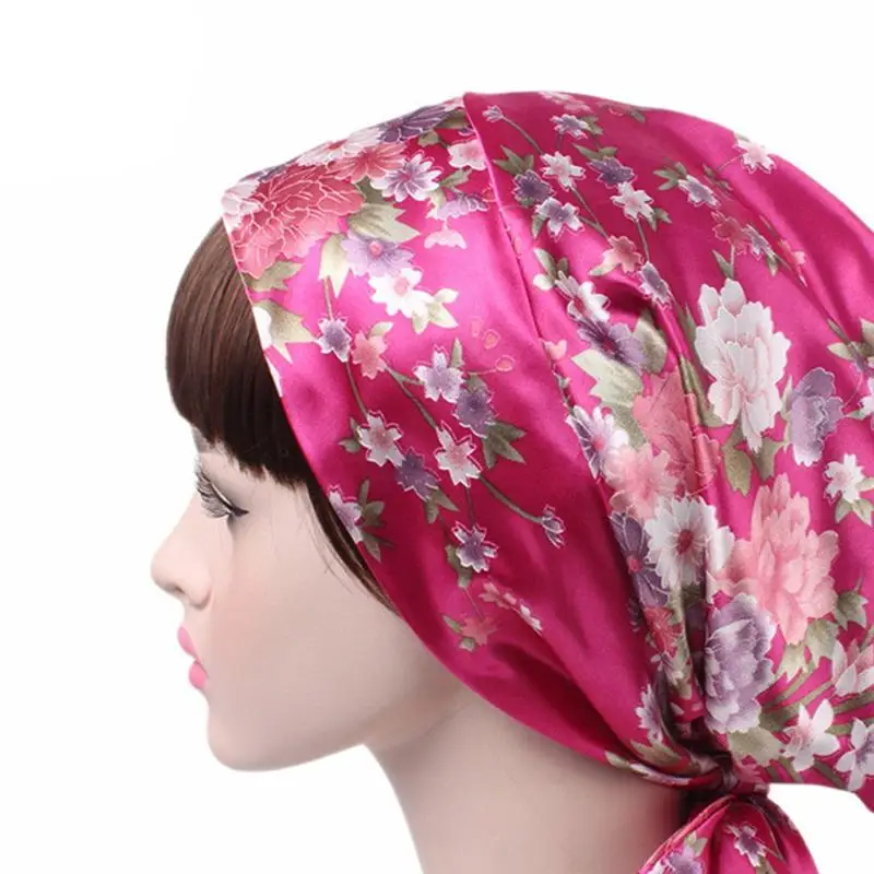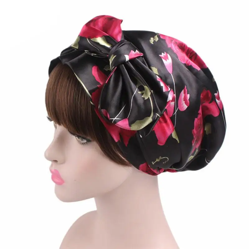Шапка изготовлена из высококачественного атласного материала для прочного и длительного использования. Удобные и дышащие, заботятся о вашей коже. Простой дизайн с цветочным принтом сделает вас более элегантной и красивой. Модный головной убор может быть использован для дня рождения, вечерние, рождественские подарки, путешествия и фотографии.