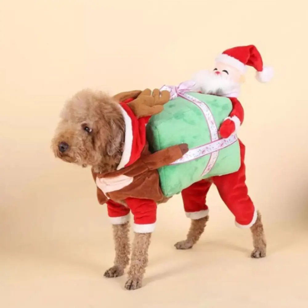 -Уникальный и стильный дизайн, собака носит подарочную коробку с Санта-Клаусом, сделает вашего питомца привлекательным.