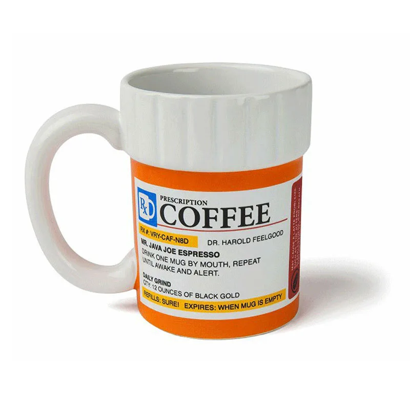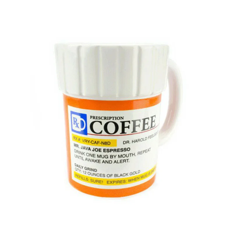 * Эта Веселая керамическая кофейная кружка выглядит как лекарственная бутылка по рецепту, и этикетка наполнена веселыми пунами о кофе.