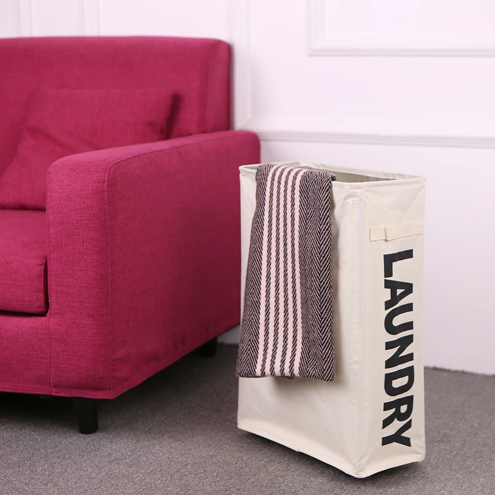 Тонкая корзина для белья предлагает достаточно места для грязной одежды и не займет много места.