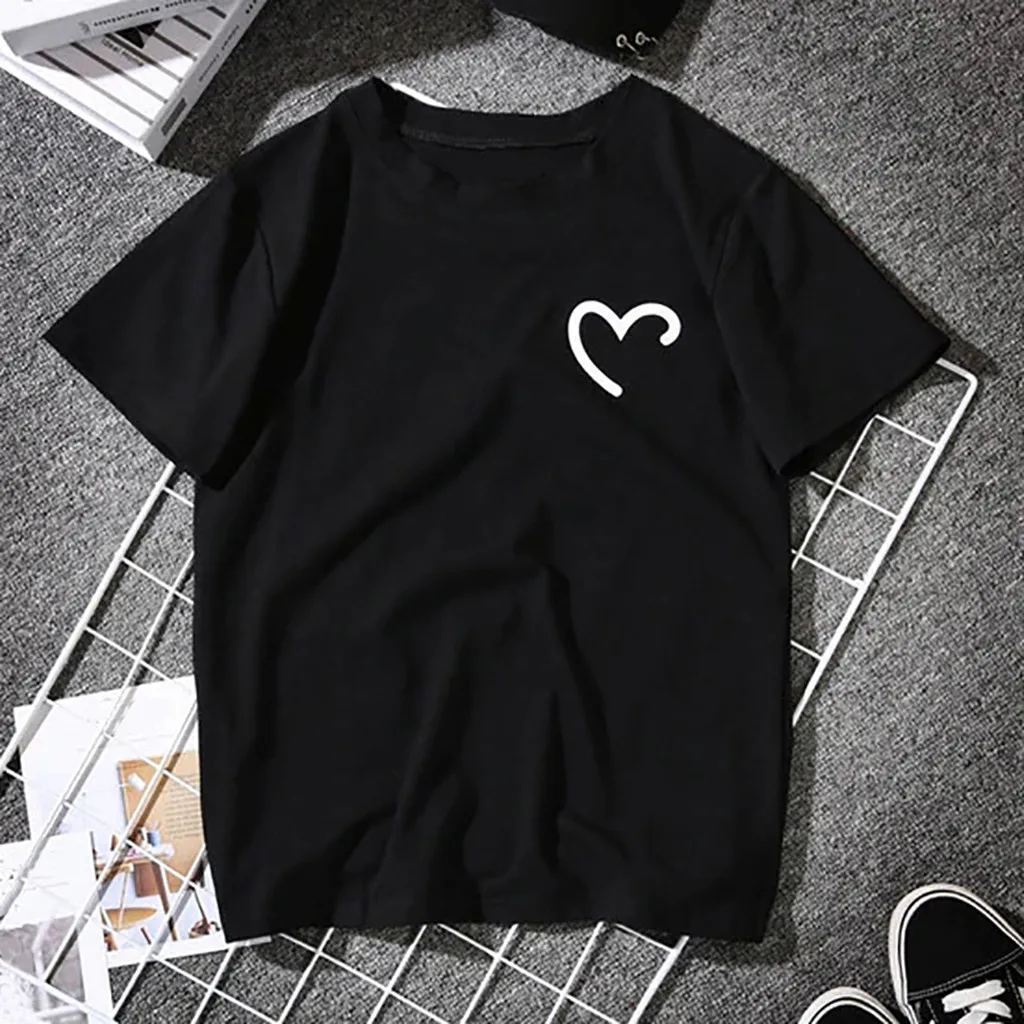 Женские футболки с принтом в виде сердца, большие размеры, футболка с короткими рукавами, блузка