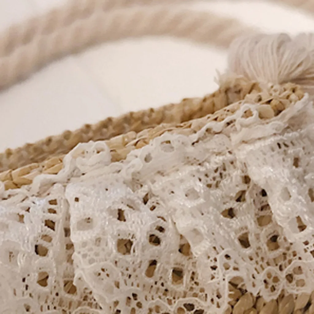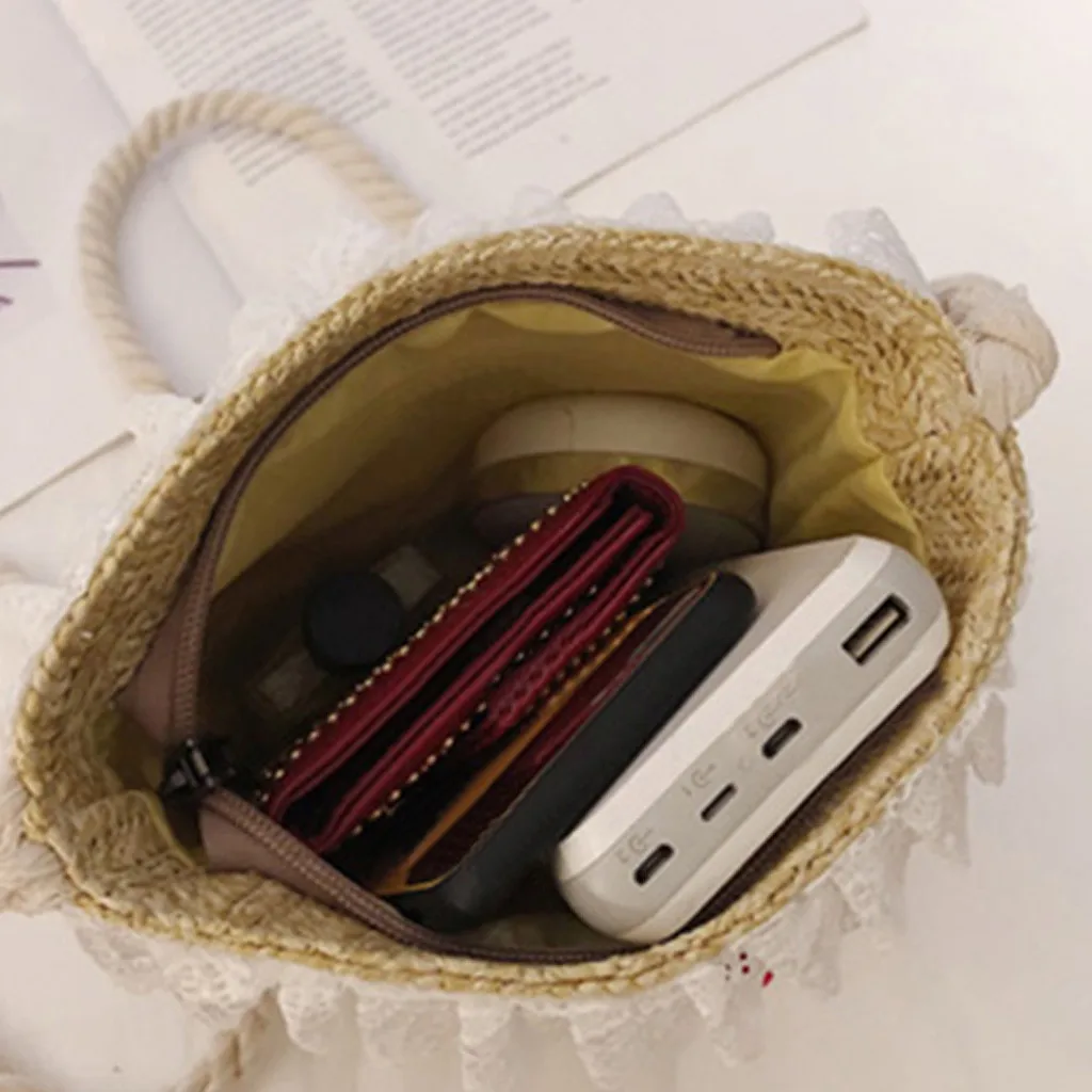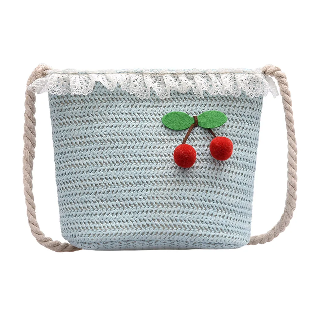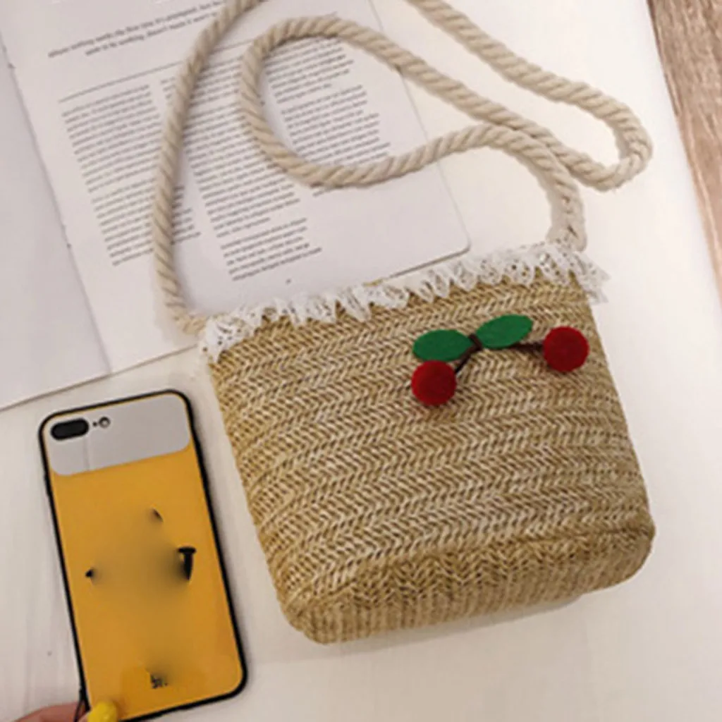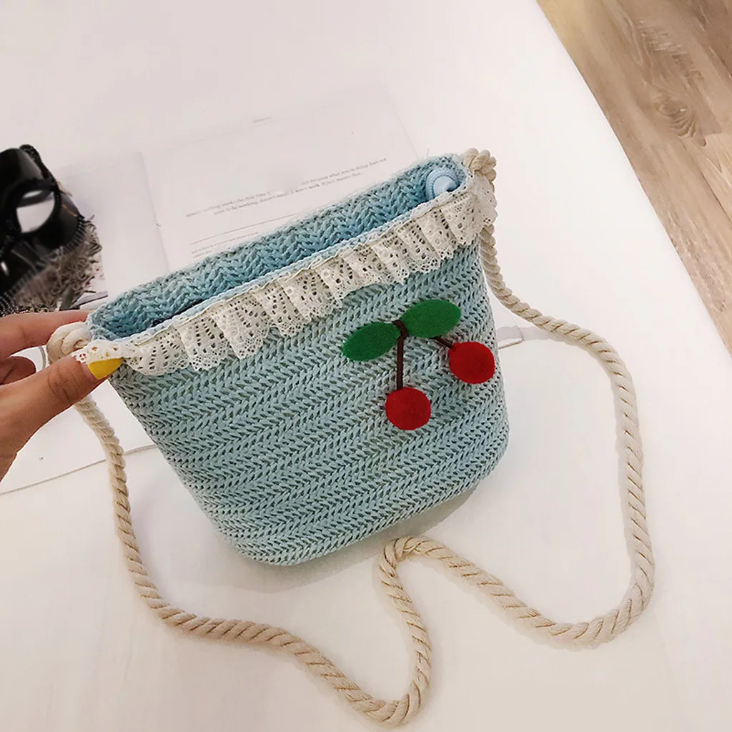 Женская Соломенная Сумка вишневая сумка в форме ведра, маленькая сумка через плечо из свежего кружева