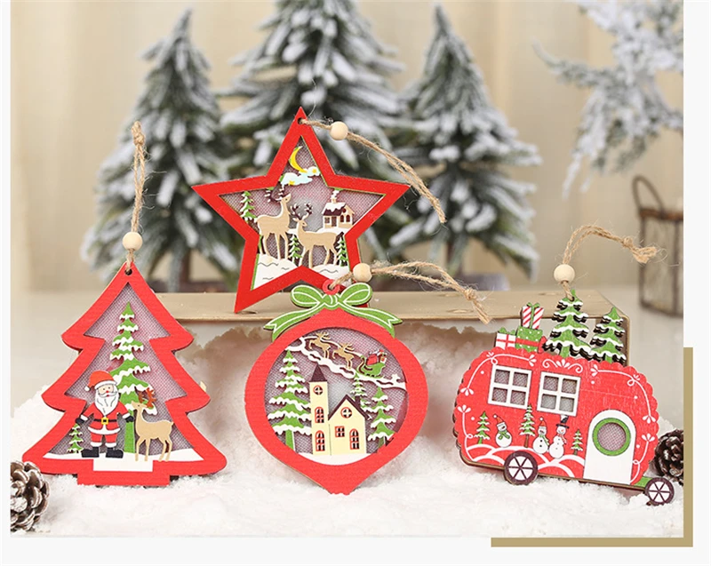 Рождественские украшения, деревянные подвески с выемкой, креативный новогодний светильник, рождественские украшения на колесиках, ZB032, 2019