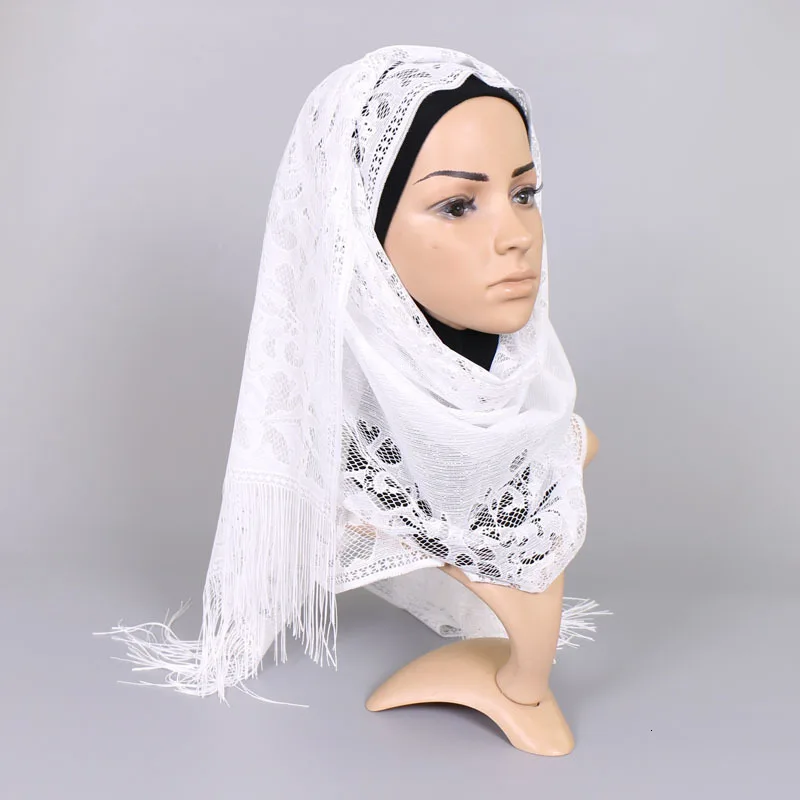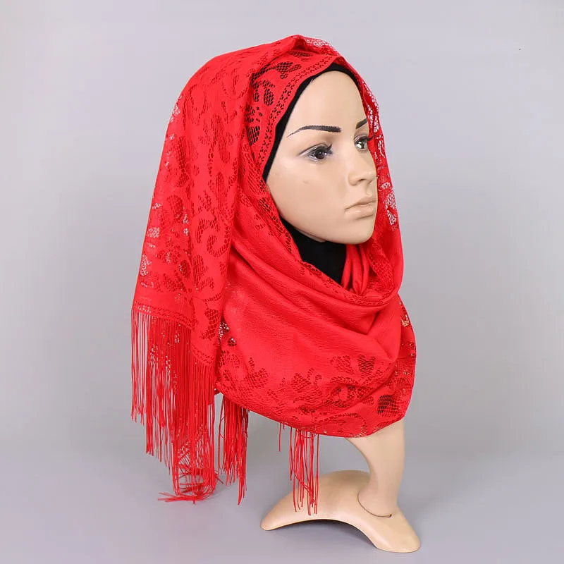 Новые женские шарфы из полиэстера, полый дышащий шарф с кисточками, модный длинный мусульманский шарф