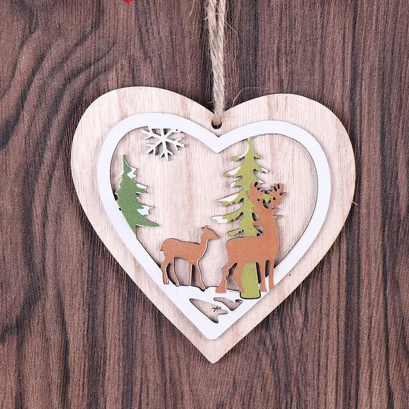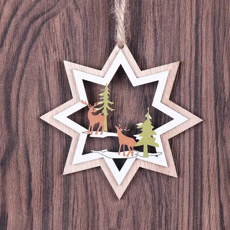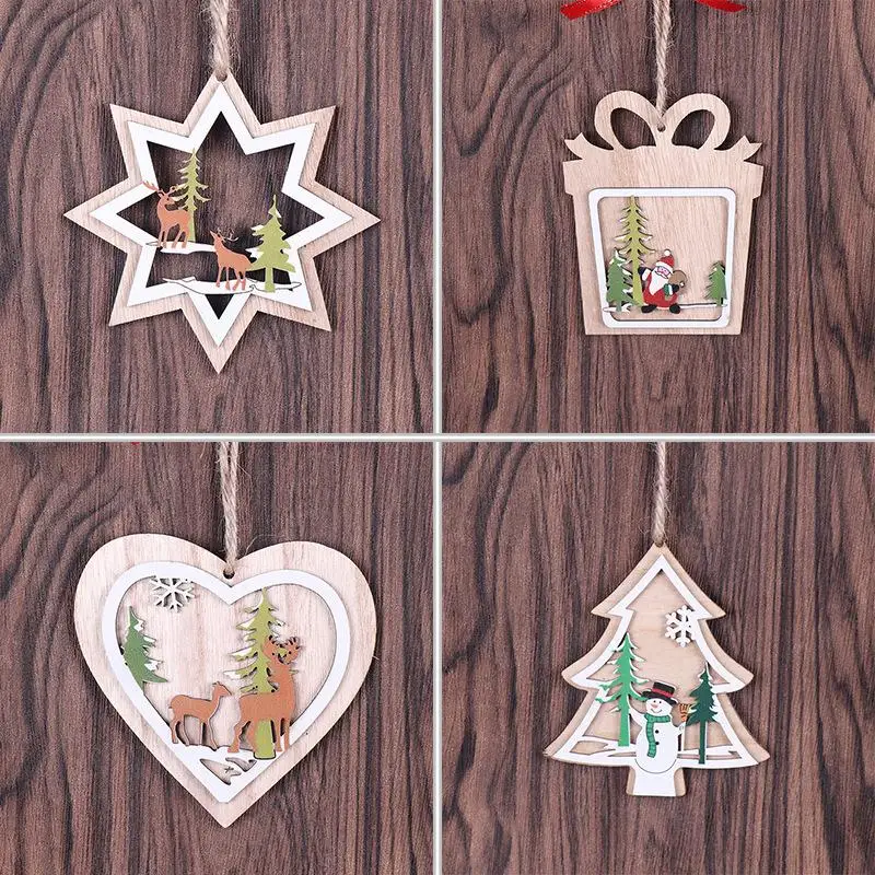 Рождественские полые висячие украшения, деревянные подвески с оленями Санты снеговика для рождества, вечерние украшения для дерева DIY ZB228