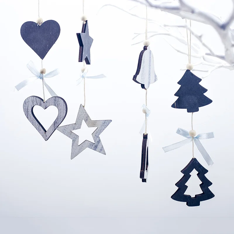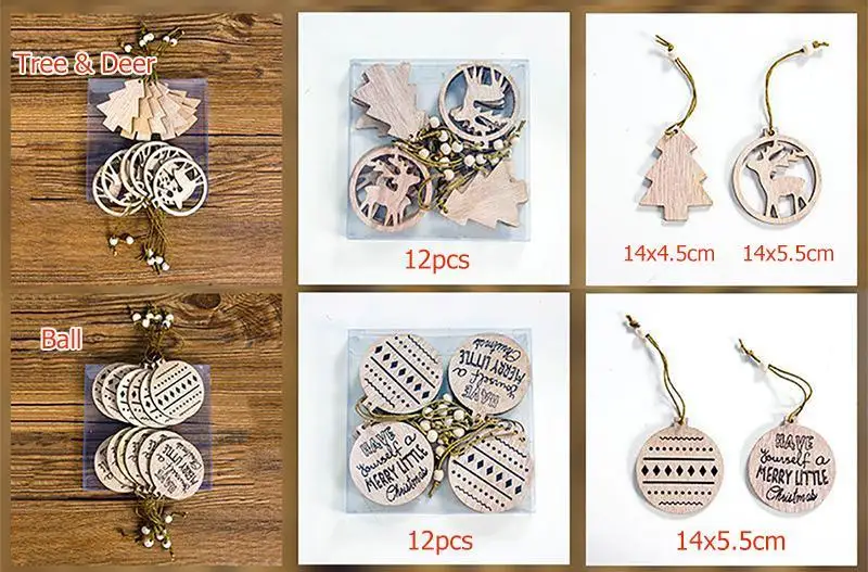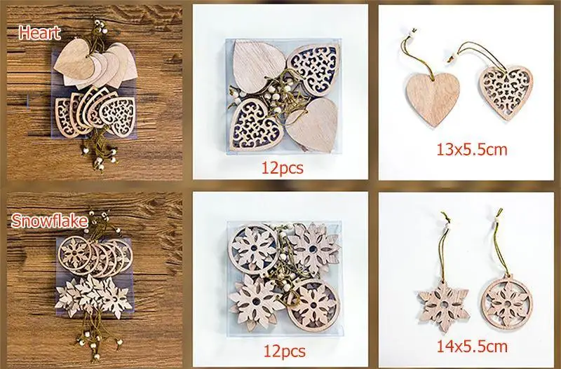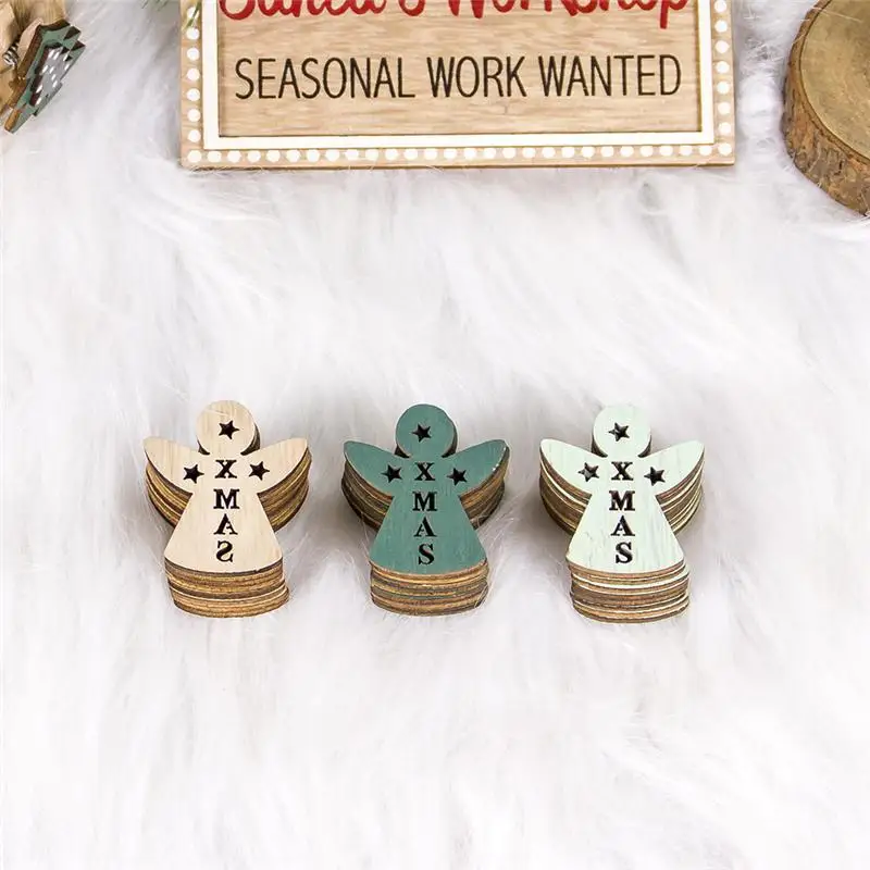 Набор из 12 штук, деревянные подвески в виде ангела, снежинки, оленя, Рождественская елка, висячие украшения для дома, Новогоднее украшение ZB197