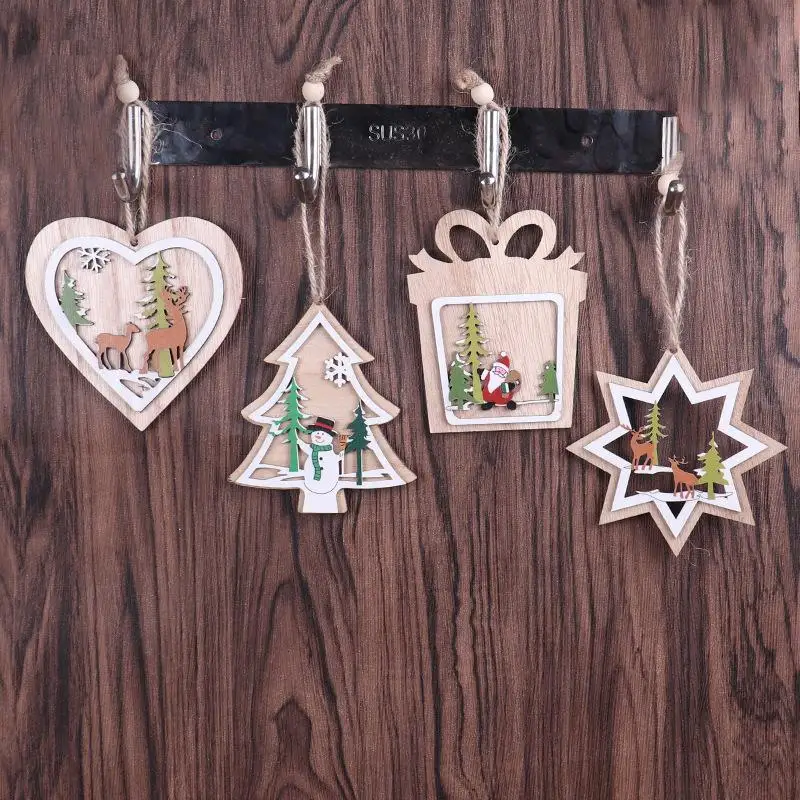 Новогодний Рождественский деревянный кулон, безделушка, деревянные поделки для рождественской елки, рождественские подвесные украшения для вечеринки, украшения, рождественские товары