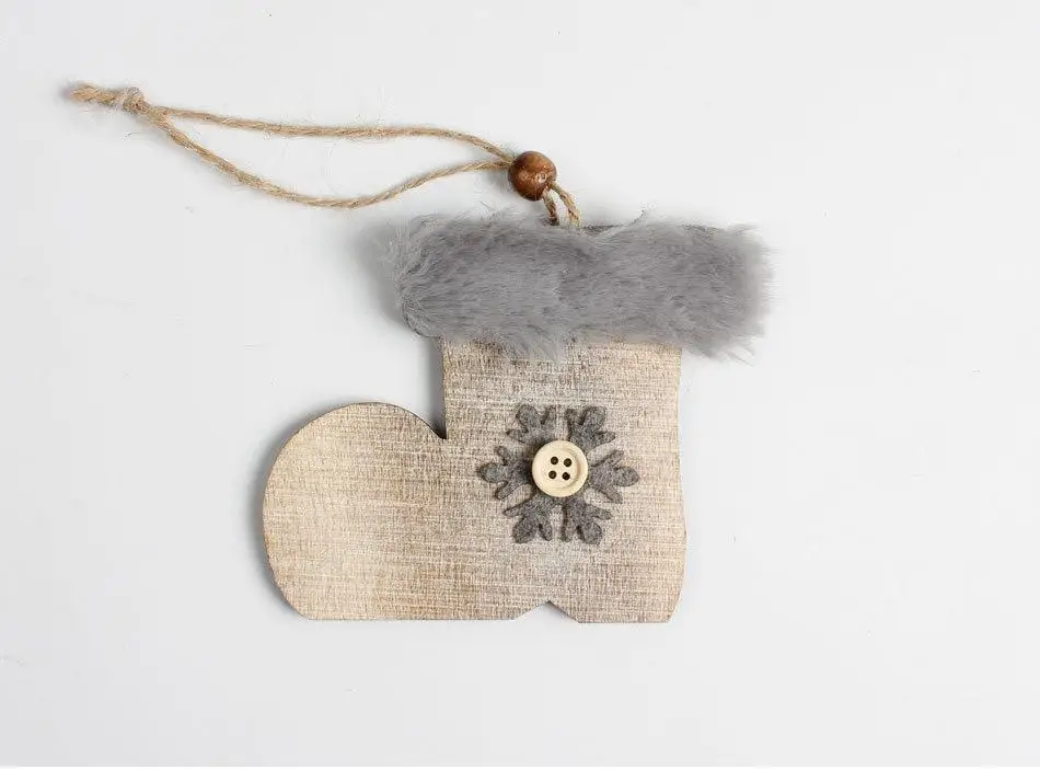 Деревянные рождественские украшения Новогодний подарок искусственный мех Снежинка колокольчик олень висячие украшения деревенские рождественские украшения ZB227
