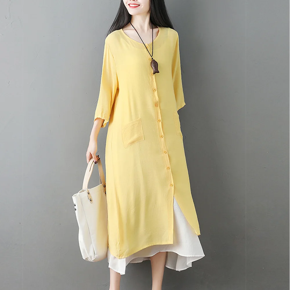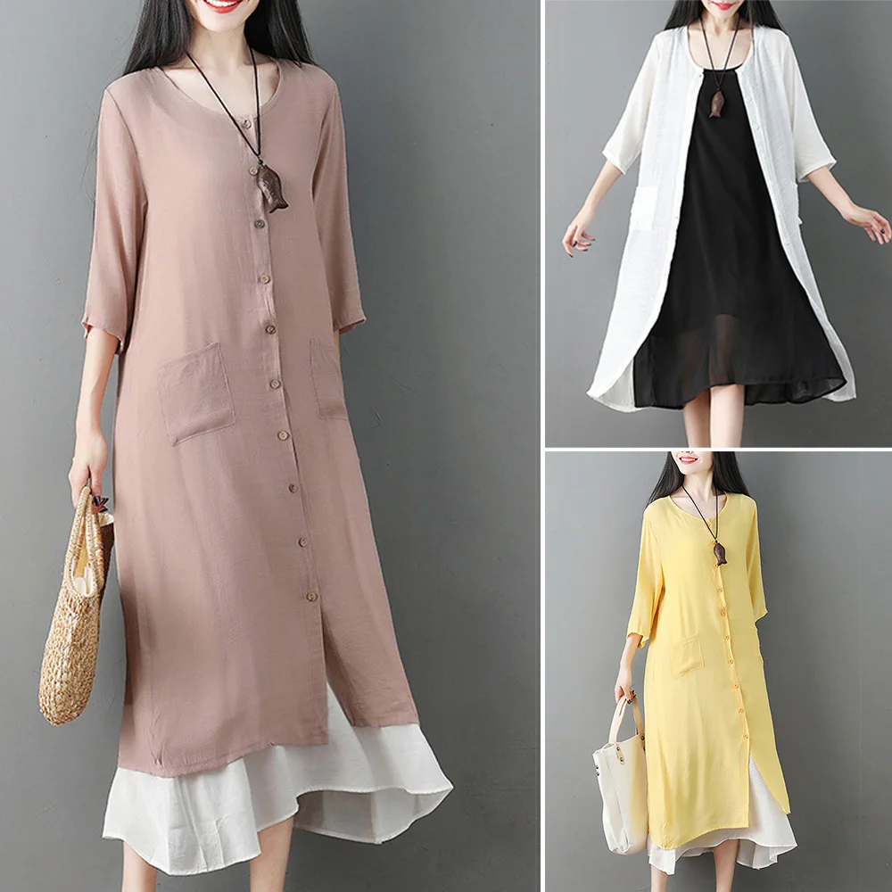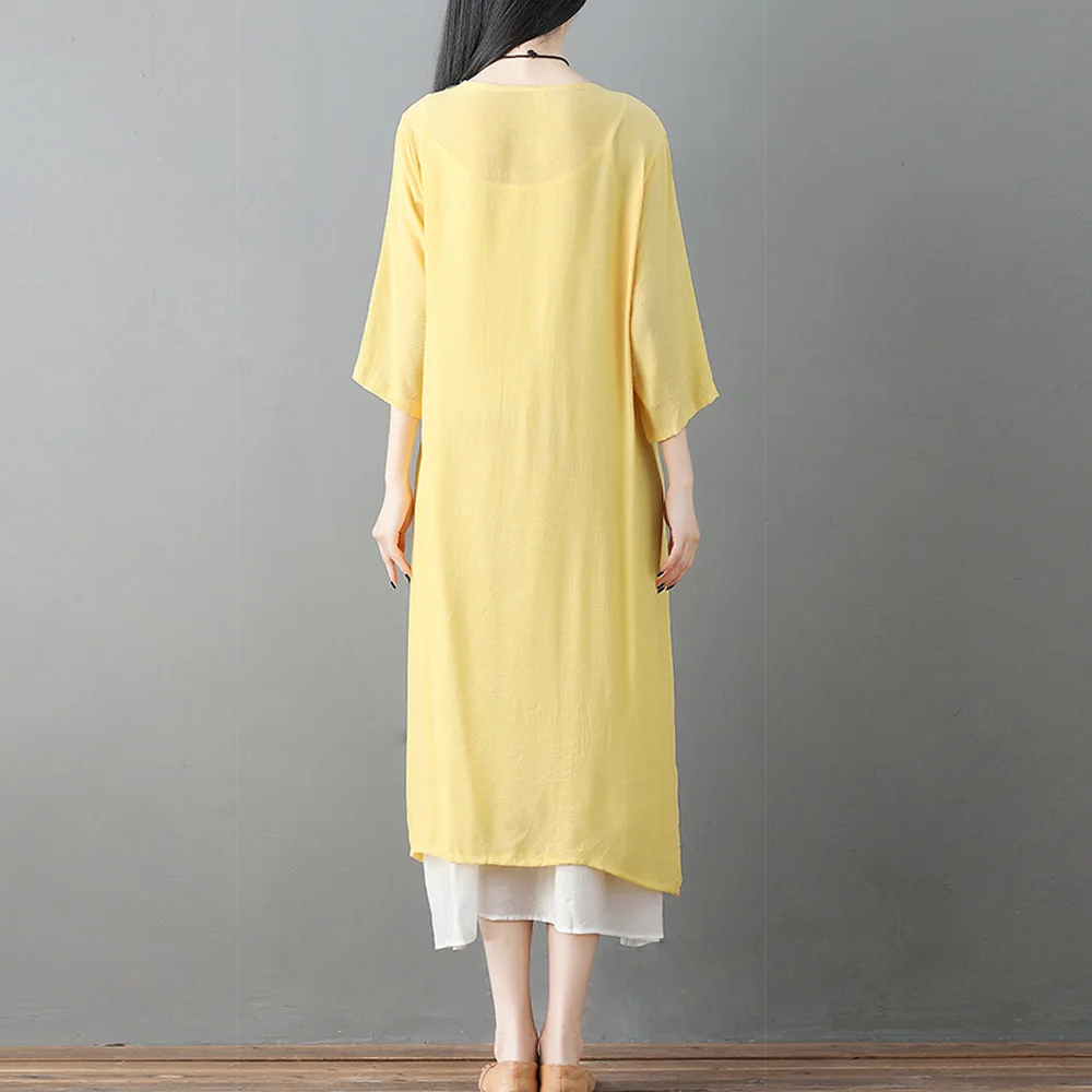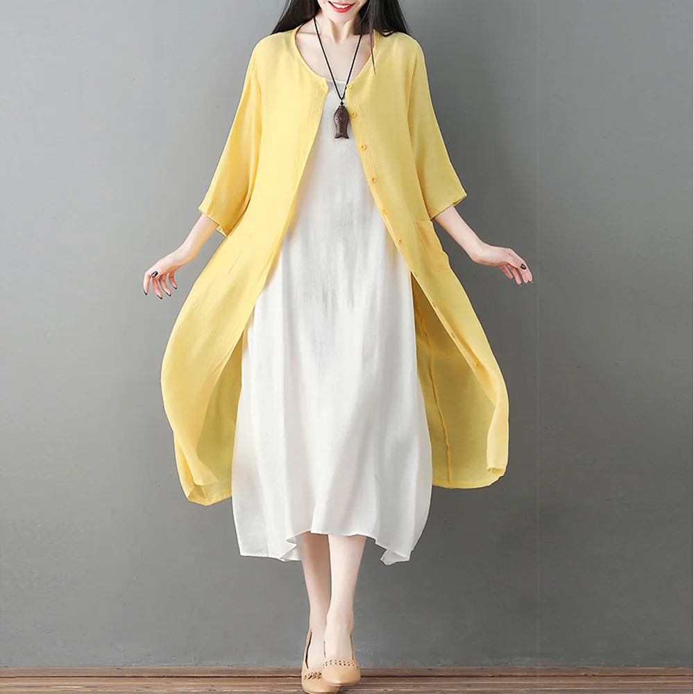 * Item Description:Summer Women's Loose Casual 3/4 Sleeve Linen Cover-up Beachwear Long Cardigan