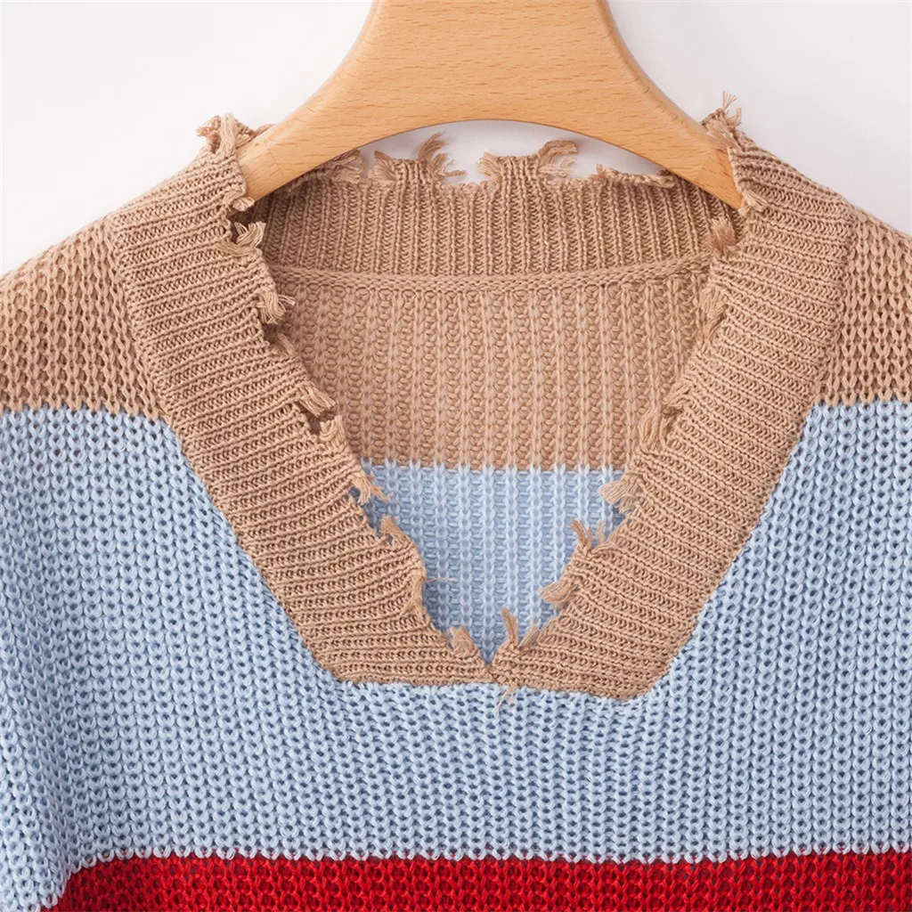 Женский трикотажный пуловер с длинным рукавом и v-образным вырезом
