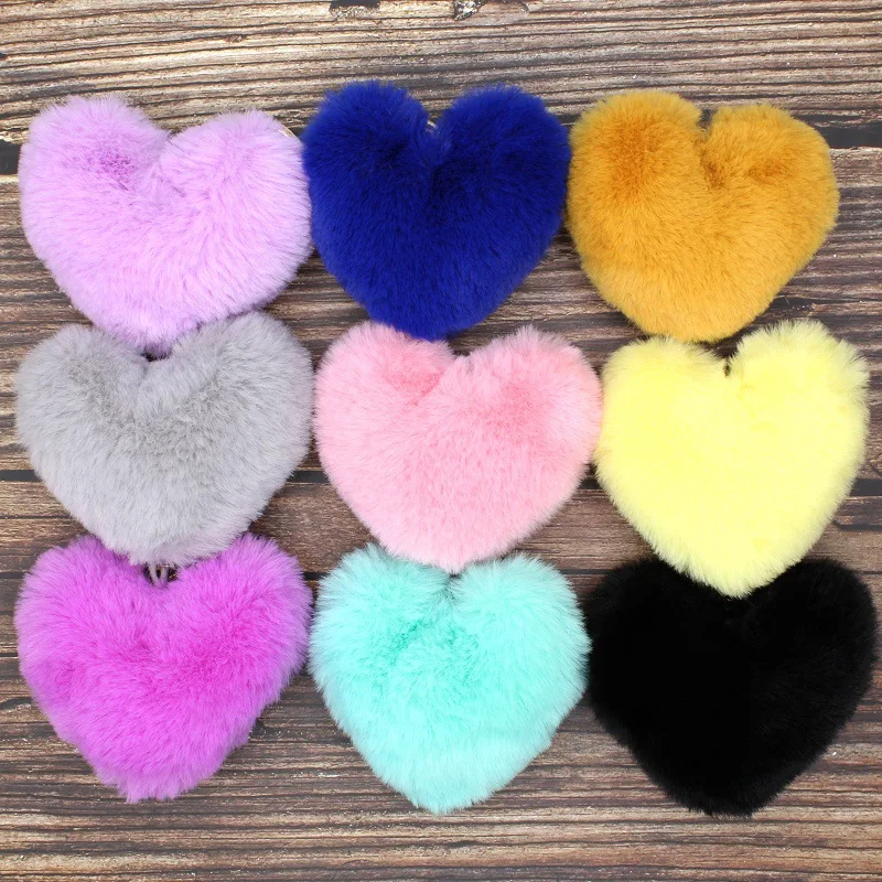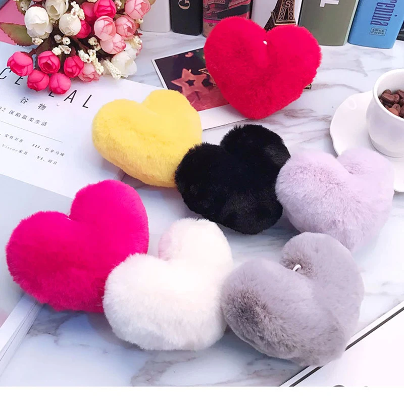 Женская обувь с помпонами в форме сердца, помпон из искусственного кролика, цепочка для ключей для сумки, модные подвесные аксессуары для телефона
