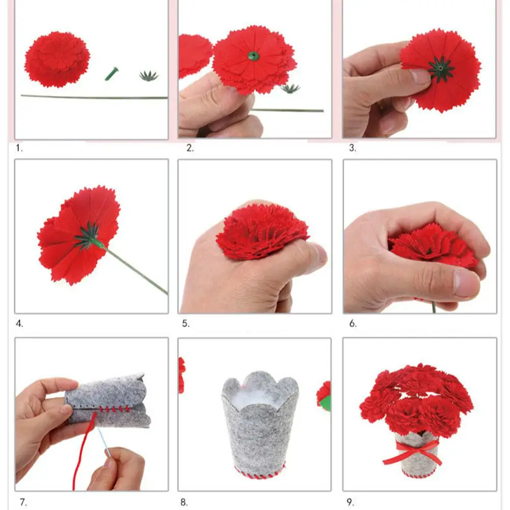 Package List:Non-woven Flower Pot *1+ Non-woven Petal Set *1+ Wire Set *1+ Ribbon *1+PP Cotton*1