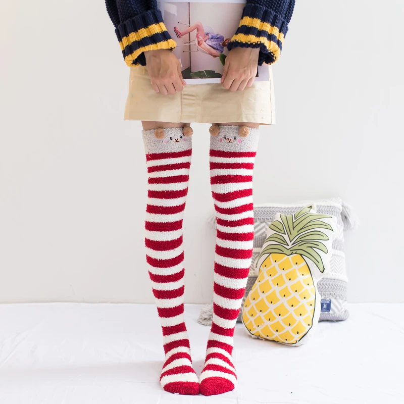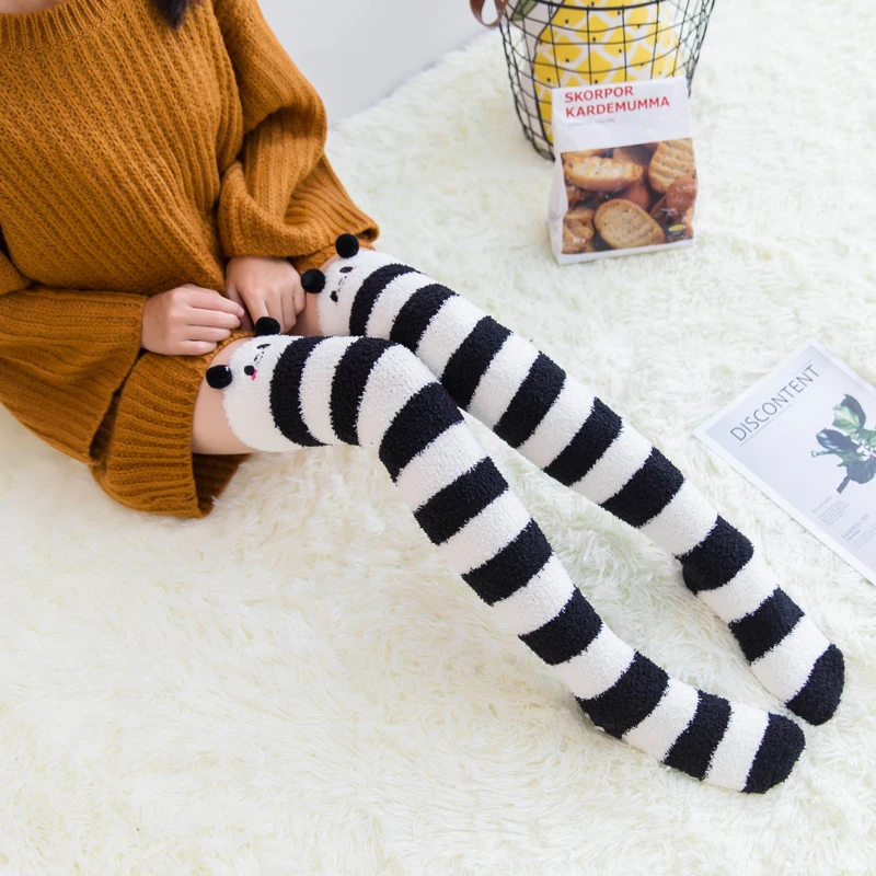 Милые женские носки выше колена с принтом животных в полоску, зимние теплые облегающие высокие носки для женщин, домашняя одежда, модные сексуальные длинные гольфы