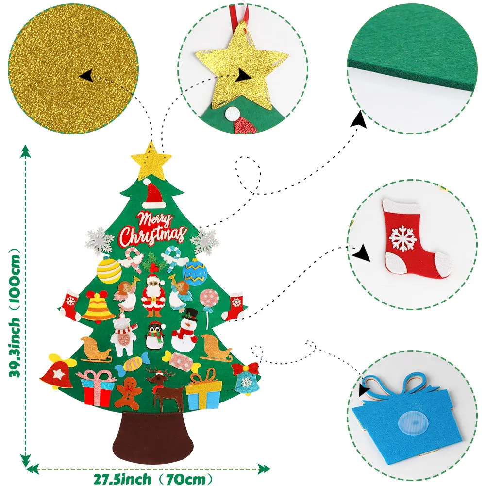 Наш теплый обновленный войлок, Рождественская елка, блестящий стикер, украшение с сумкой для хранения для детей, рождественские украшения, новогодние подарки