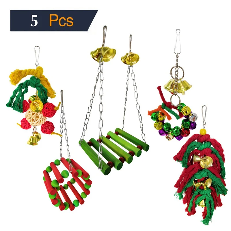 Игрушка попугая, Рождество, украшение птица в клетке, набор, кусачки, игрушка, подставка, 5 шт., цвет: смешанный цвет