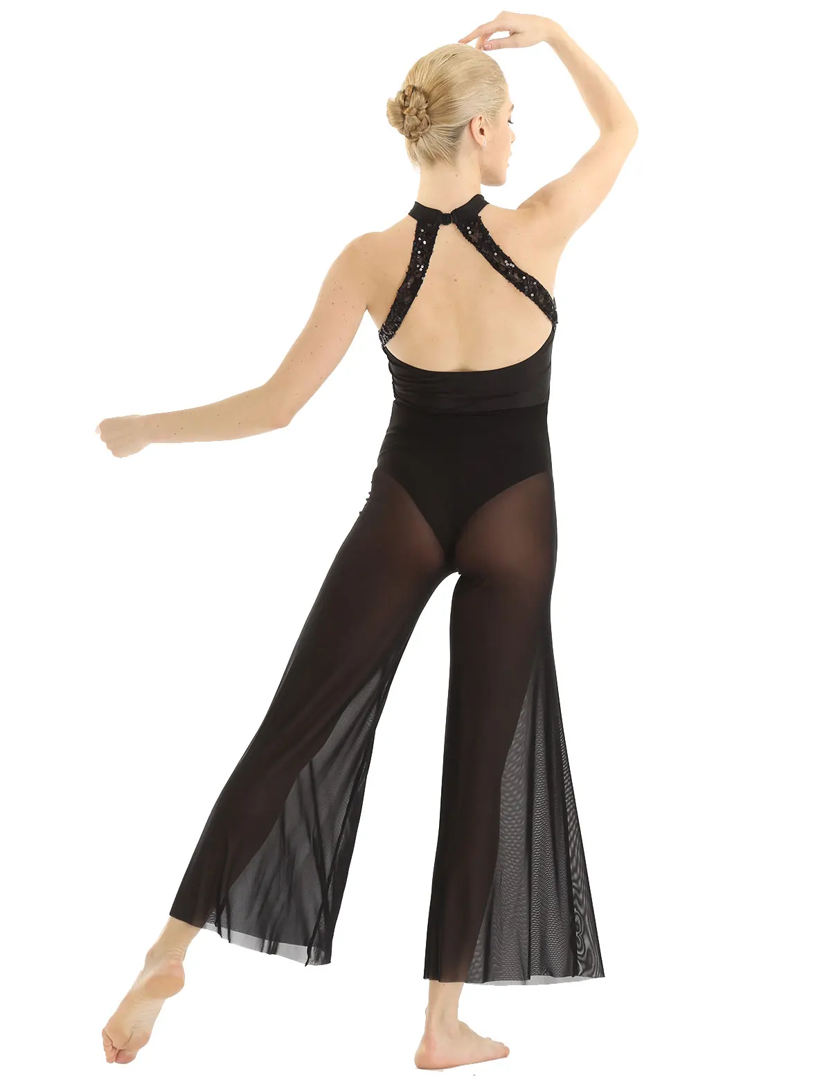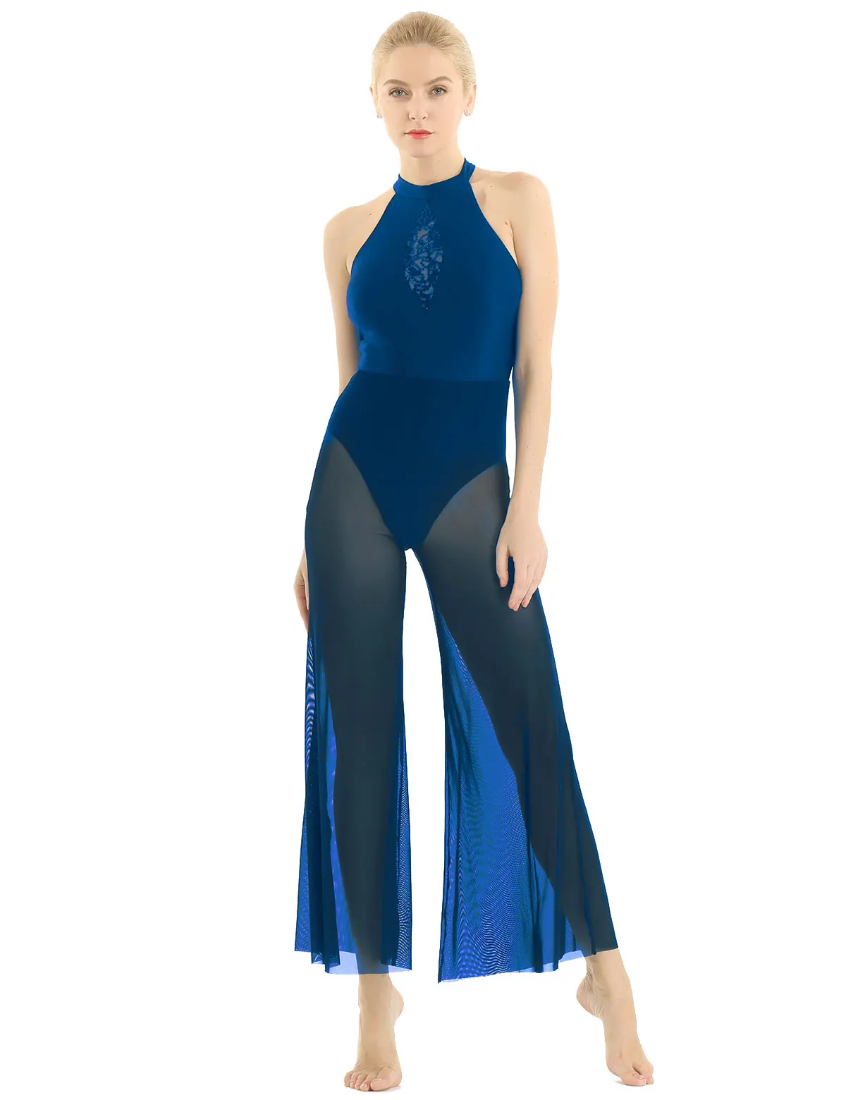 Встроенный купальник с прозрачной сеткой длиной до щиколотки с широкими расклешенными ножками для элегантного образа. Пропускающее воздух, мягкое и удобное в носке изделие