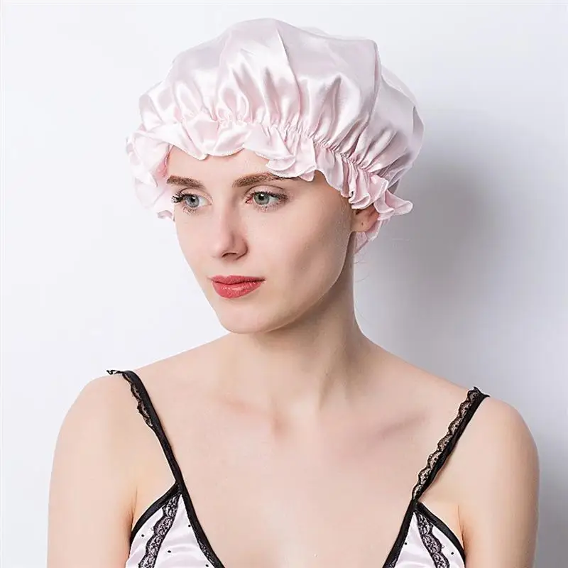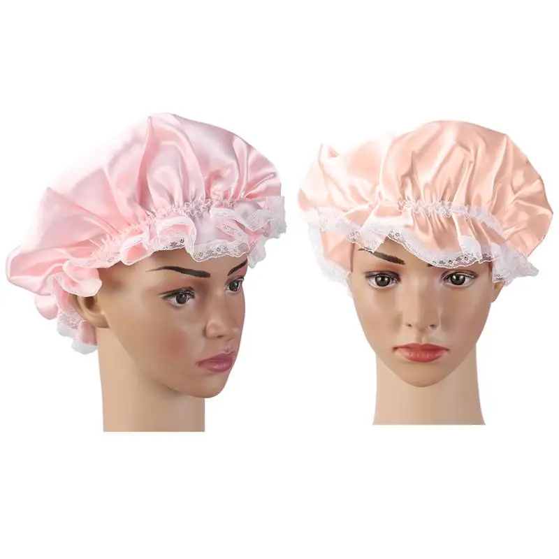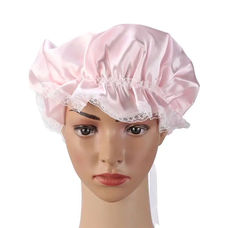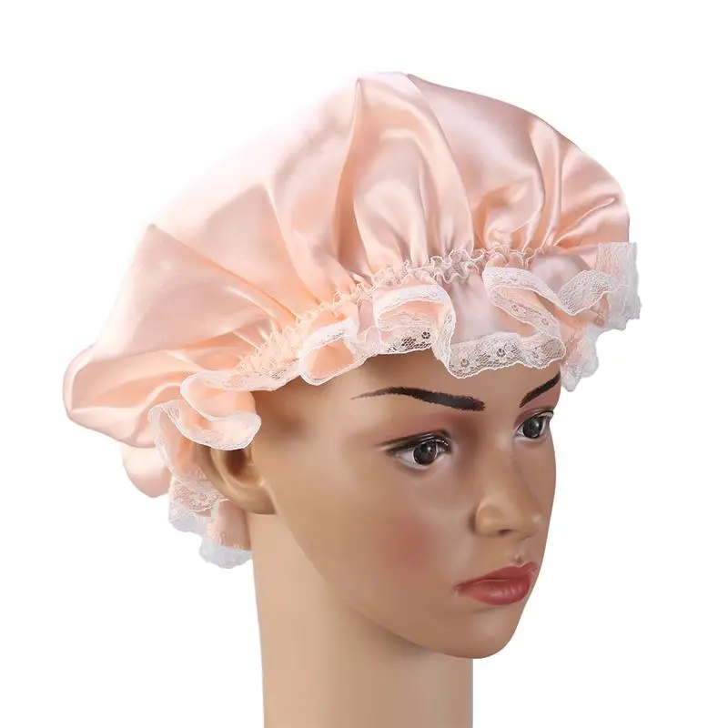 Женский двухслойный Чепчик для сна, домашняя ванная комната, Душ, шапочка на шнурке, головной убор, взрослый длинный колпак для сна 58-60 см
