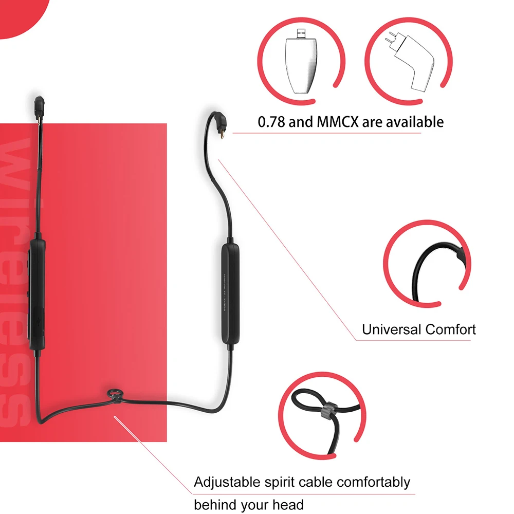 Этот беспроводной HiFi кабель для наушников BT версии 5,0, встроенный литиевый аккумулятор 100 мАч, поддерживает различные аудио протоколы. Доступны 2pin 0,78 мм и mmcx. Аудио Кабель использует защитную обмотку структуры для увеличения анти-помех.