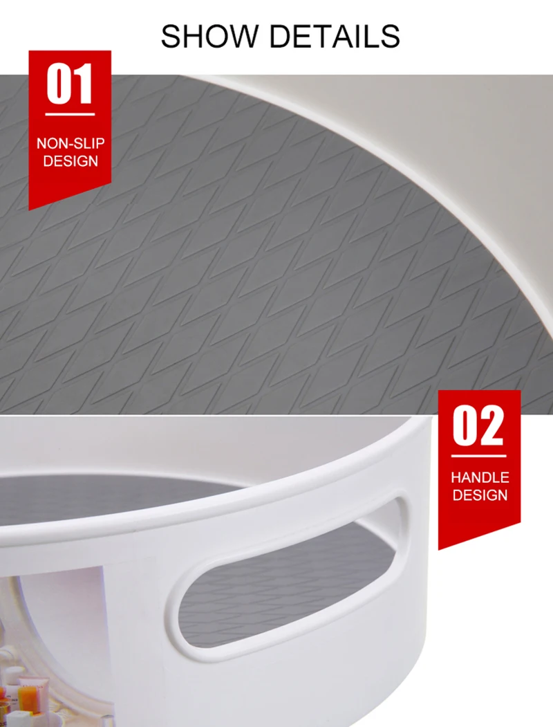 Противоскользящая конструкция: нескользящий Силиконовый дизайн. Противоскользящие характеристики великолепны, когда вы поворачиваете их, вам не придется беспокоиться, выскользнут ли предметы в ящике для хранения.