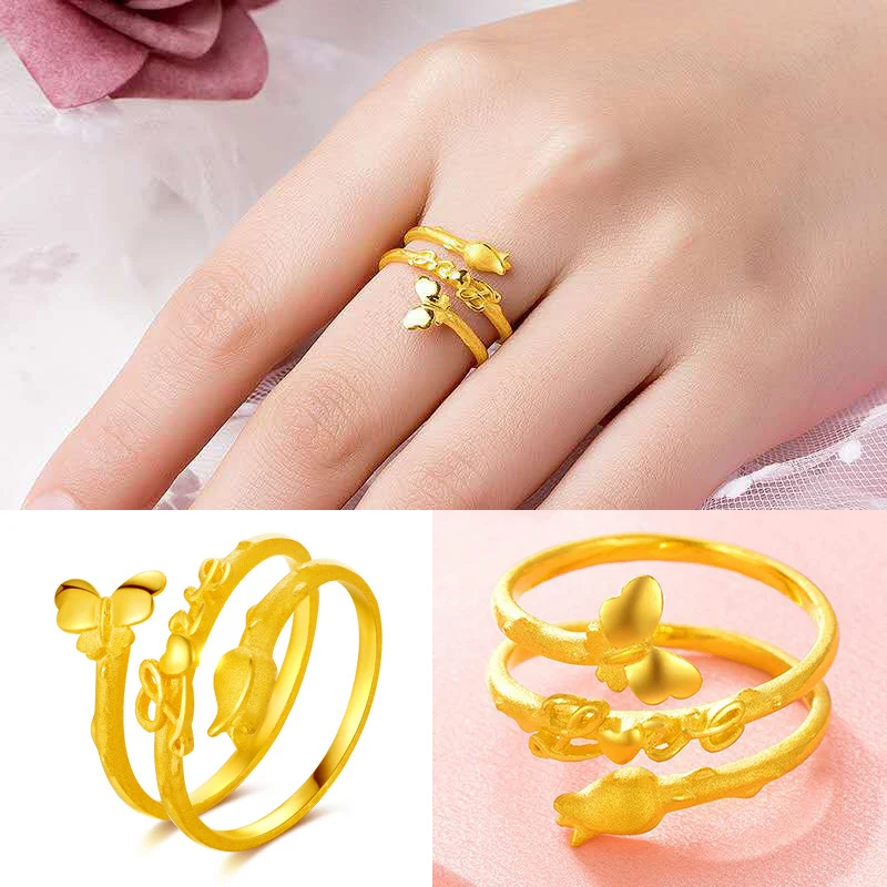 Женское кольцо в виде бабочки Love Rose, регулируемое Золотое кольцо с открытым браслетом и цветком розы для девушекUS $1,81