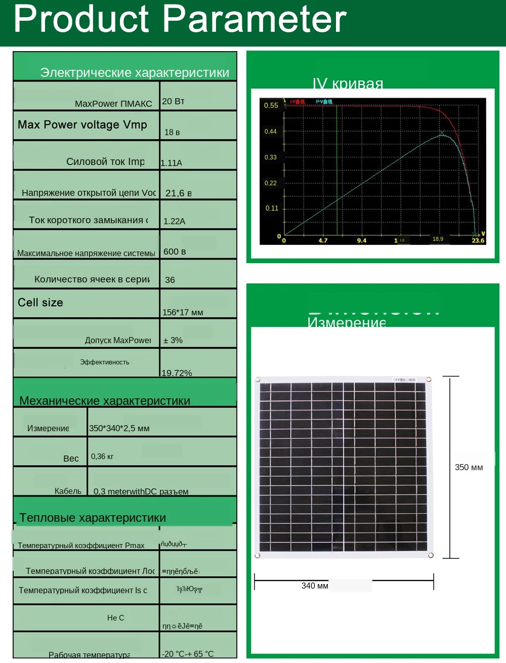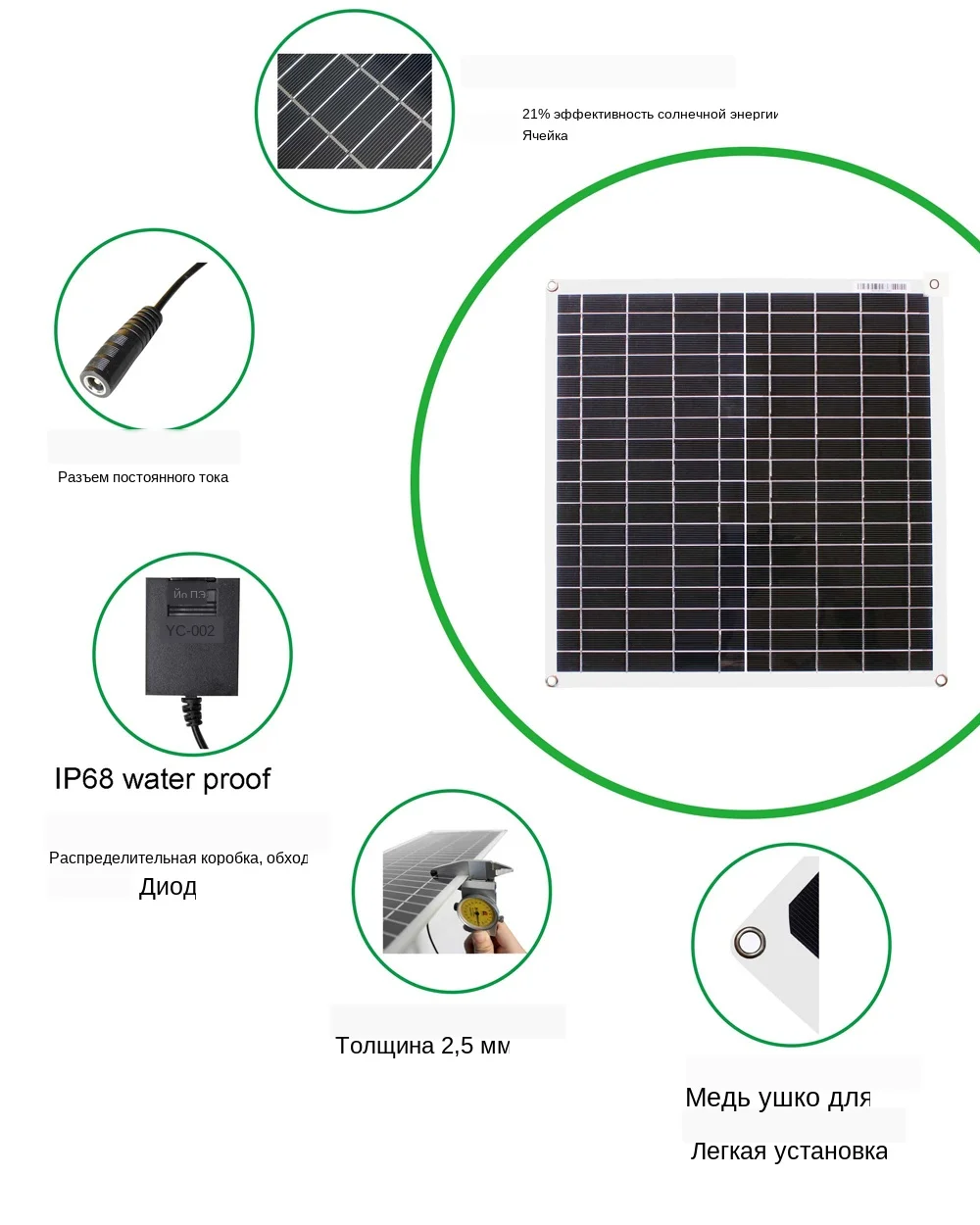 Высокая эффективность Высокая эффективность солнечных батарей: монокристаллический, эффективность солнечной панели до 21% Защита БАЙПАСНЫЕ диоды минимизируют падение мощности, вызванное затенением, и обеспечивают превосходную производительность в условиях низкой мощности светильник Ультра легкий Благодаря передовым полимерным веществам этот продукт весит на 70% меньше, чем обычные солнечные панели, что делает транспортировку и установку ветерком, легко переносить, легко доставлять, легко устанавливать Супер тонкий Почти не заметна, легкая панель 20 Вт, уложенная плоско, составляет всего лишь десятую часть дюйма высотой! Примерно на 95% тоньше, чем его жесткий аналог, эта панель идеально подходит для скрытой солнечной установки, идеально соединяется с вашей яхтой и караванной крышей Очень прочный Тщательно протестированная панель мощностью 20 Вт была спроектирована таким образом, чтобы выдерживать экстремальные нагрузки на ветер и снег Легко устанавливается с помощью клея, клея, винта, а также втулки на уголке для крепления винтов и крепления. Более компактный размер генерирует 30% высокой мощности, чем рынок солнечной панели, стабильно идеально генерирует мощность Закругленные углы для предотвращения царапин Широко используемые приложения: гольф-автомобиль, яхта, лодка, караван, Электромобиль, туристический автомобиль, патрульный автомобиль, крыша, кемпинг, кровельные генераторы, палатки, рюкзаки, переносные генераторные комплекты и т. Д. Заряжайте аккумулятор 12 В, Решите проблему, которую автомобиль не может начать из-за отсутствия питания.