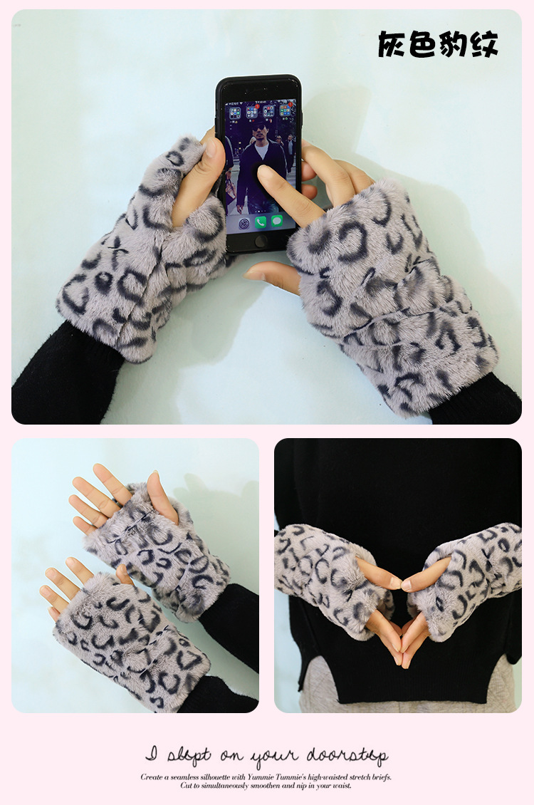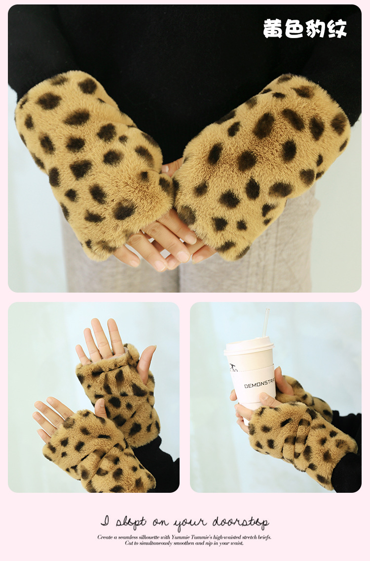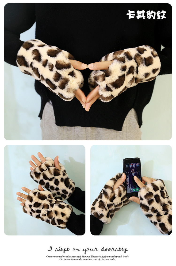 Qearlstar/милые теплые перчатки с леопардовым принтом; Плюшевые варежки без пальцев из искусственного меха для женщин и мужчин; Модная бархатная меховая подкладка; DW42