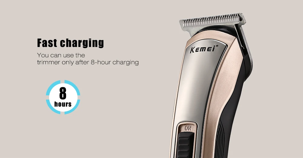 3 направляющей расчески Подстригать волосы и делать виды длины (3 мм/6 мм/9 мм) легко. Титан стальное лезвие Безопасная r-образная режущая система идеально сохраняет остроту с титановой сталью для получения лучшего эффекта стрижки. Быстрая зарядка Встроенный никель-кадмиевый аккумулятор 600 мАч. Можно заряжать и использовать в одно и то же время, он также может быть использован в cordlessly после зарядки 8 часов. Мощный мотор Серебряный Pd сплав двигателя высокой скорости вращения с экологическим шумом.