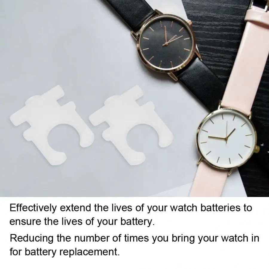Designed to be inserted between the watch case and the crown, compatible with most watches. Effectively extend the lives of your watch batteries to ensure the lives of your battery. Reducing the number of times you bring your watch in for battery replacement. Made of quality plastic material, wear-resistant and sturdy for long term using. Suitable for watch makers and watch repairing workers.
