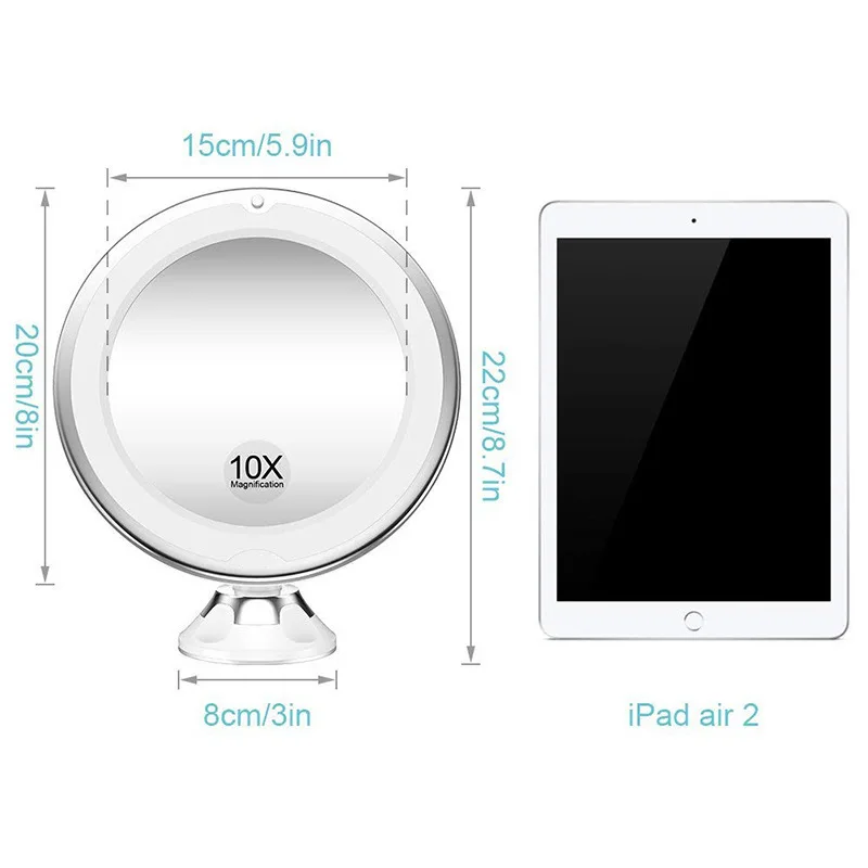 Название продукта: светодиодный зеркало для макияжа Вход питания: 3 шт. AAA питание от аккумулятора ed (без аккумулятора) Материал: АБС + серебряное зеркало Цвет изделия: белый Увеличение: 10X