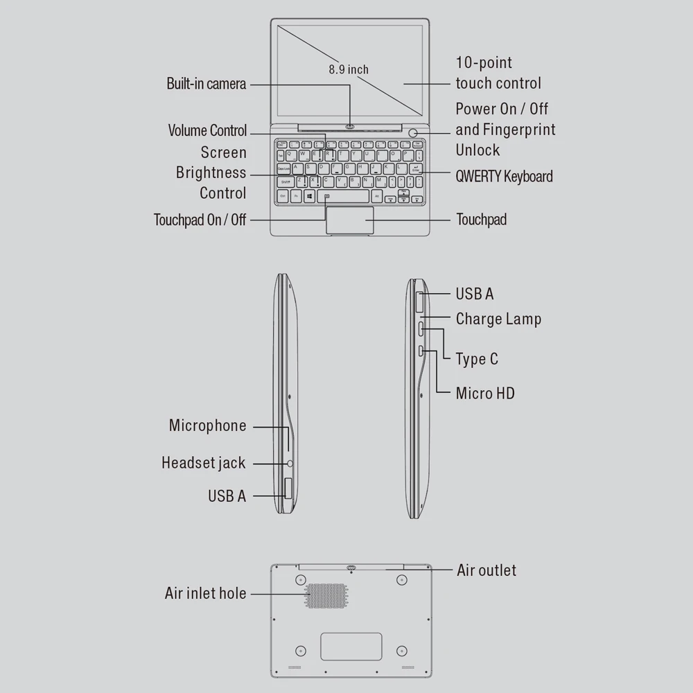 Порт ввода/вывода: 1 * USB Type-C, 2 * USB 3,0, 1 * Micro HD, 1*3,5 мм разъем для наушников