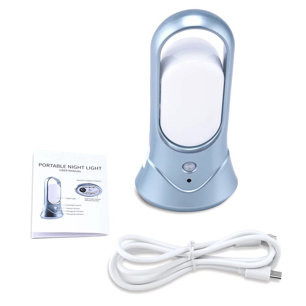 Protable Rechargeable PIR Motion Sensor LED Night Light Wireless LED Magnetic White Nightlight Emergency Torch Light For Wall Lamp Reading Light Emergency Light With USB charger Cable