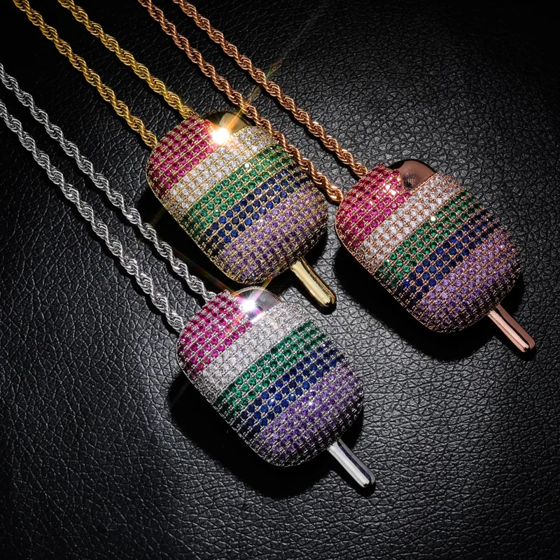 Подвеска «мороженое» со льдом медные латунные золотые серебряные розовые микро проложенные циркониевые хип-хоп цепочки в подарок из нержавеющей стали