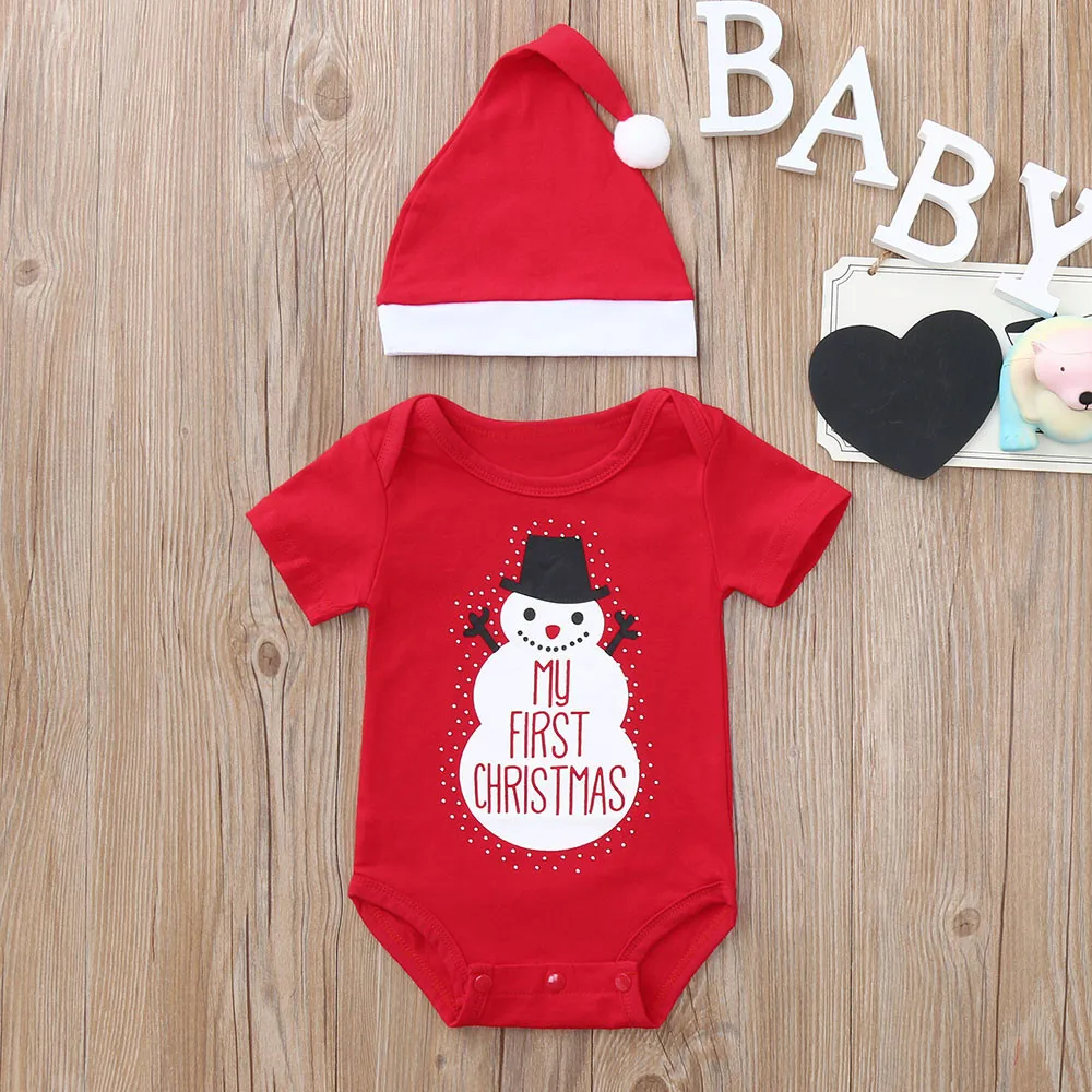 Рождественский комплект из 2 предметов для малышей: комбинезон с надписью и рисунком снеговика + шапочка