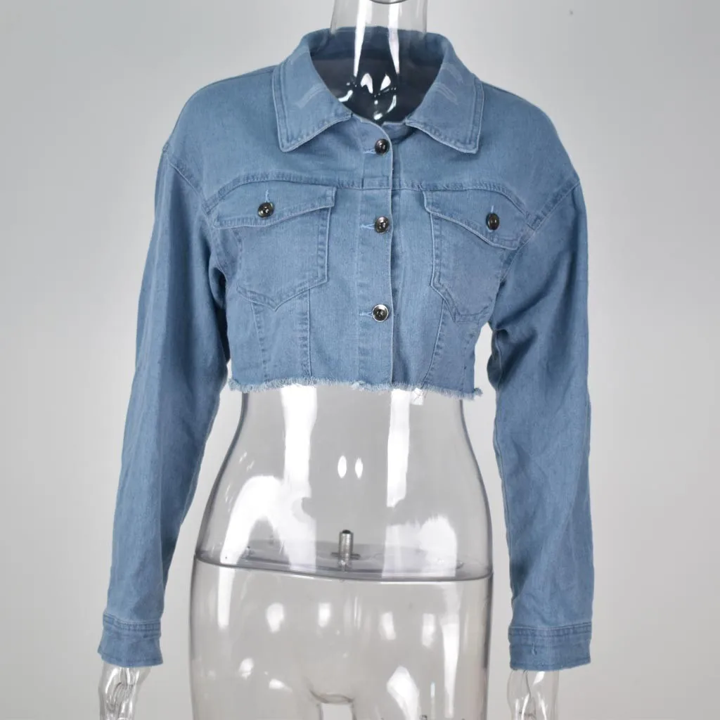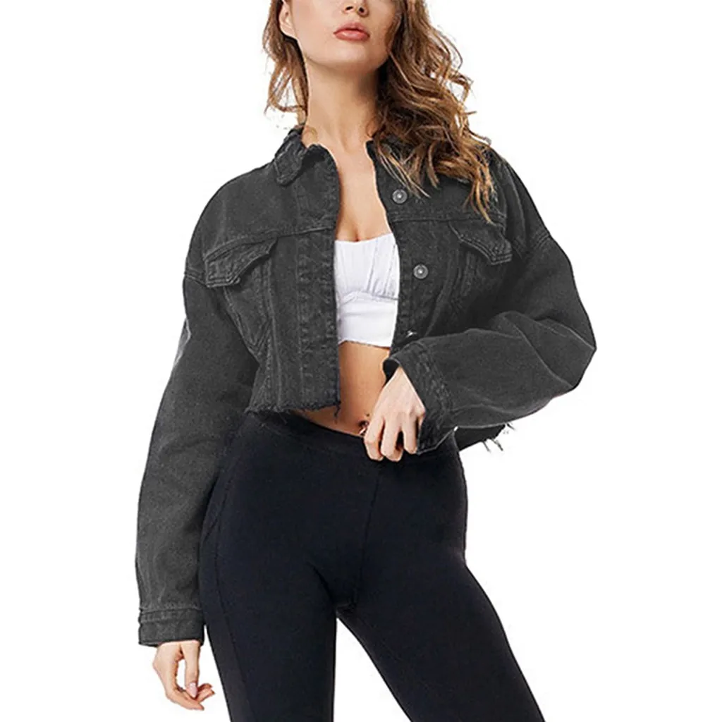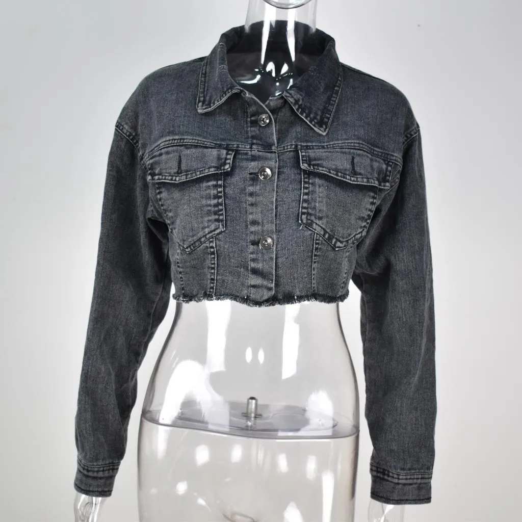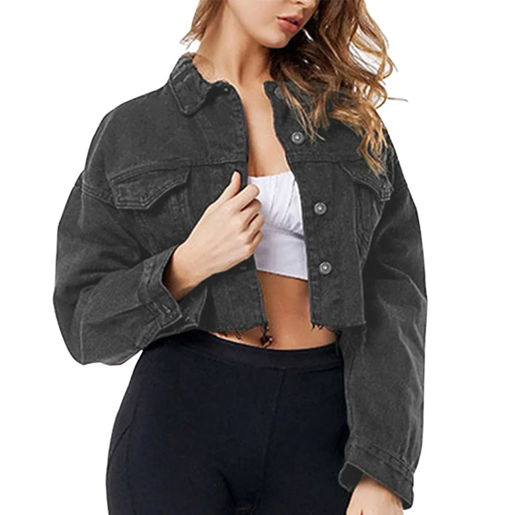 Женская джинсовая куртка с длинным рукавом, Короткая Повседневная джинсовая куртка, верхняя одежда