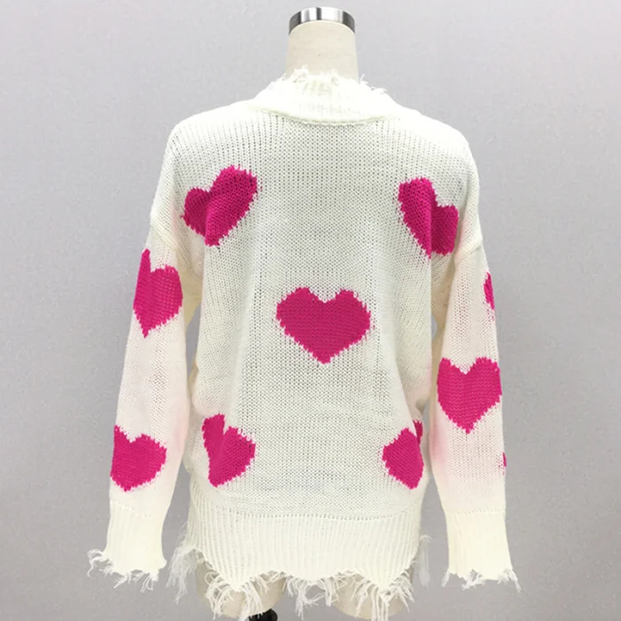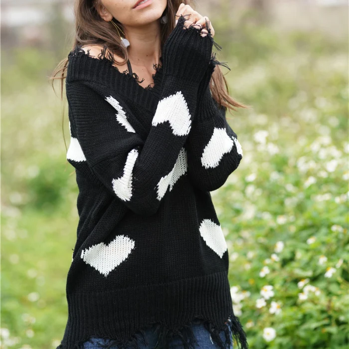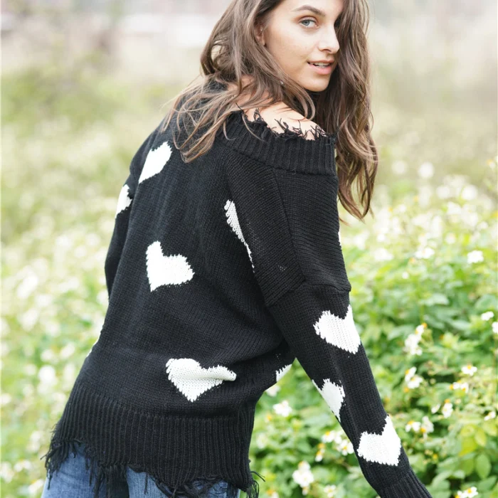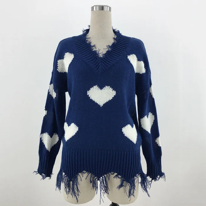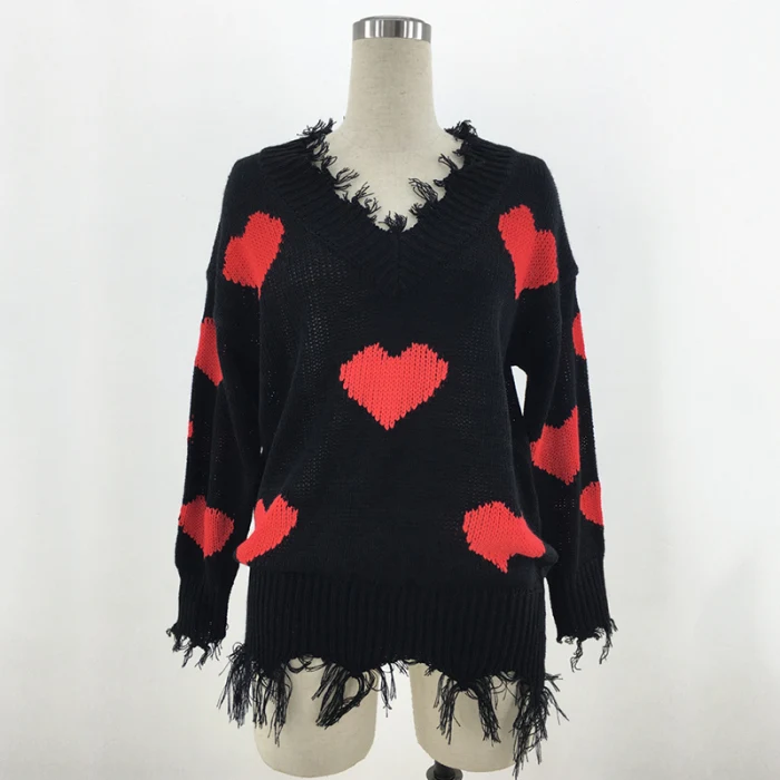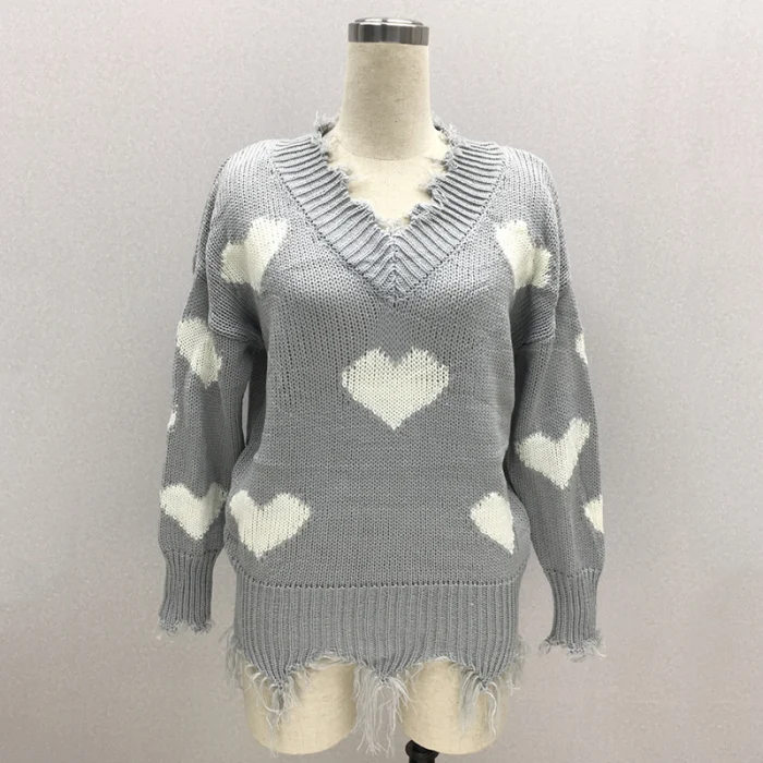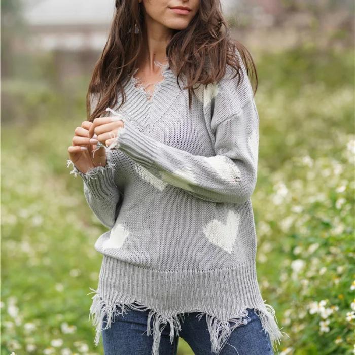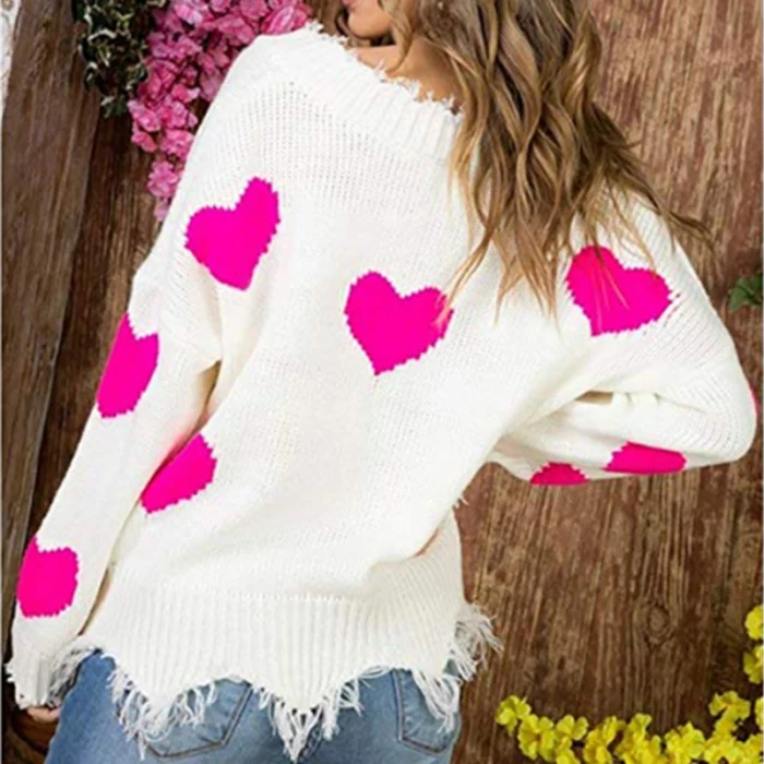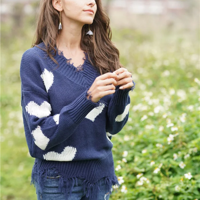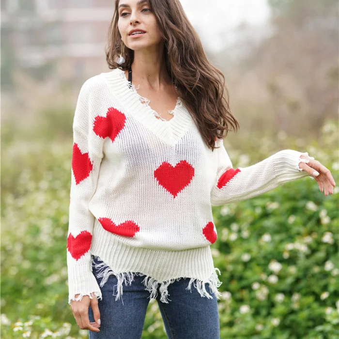 Женский свитер с v-образным вырезом и длинным рукавом с сердечком, дышащий топ на осень и зиму JS26