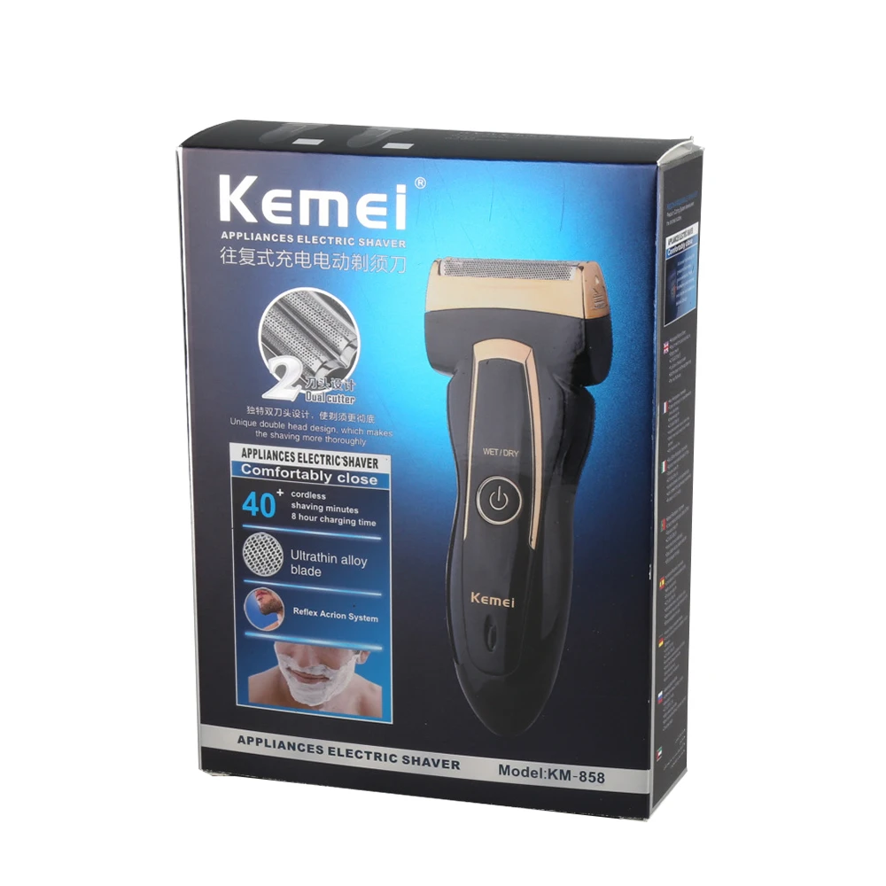 Ультратонкие лезвие из сплава. Прецизионная режущая система Сбривает даже самую короткую щетину. Уникальный дизайн с двойным лезвием, который делает бритье более тщательно. Всплывающий триммер для усов и бакенбард. Сменная головка с кнопкой на спине, просто нажмите на нее, удобно заменить головку. После 8 часов полной зарядки он может работать в течение 40 минут.