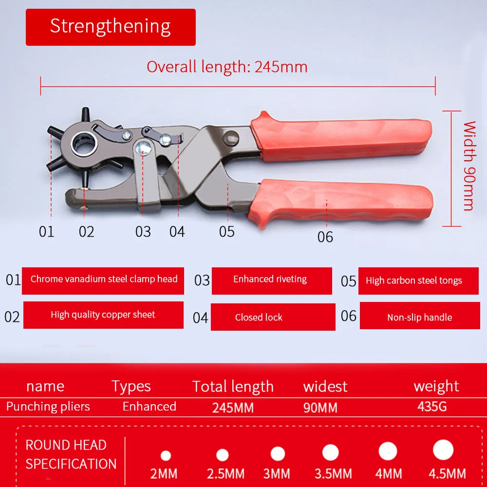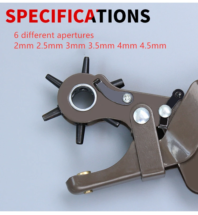 Прорезиненные ручки просты в использовании, удобные и прочные ручки 6 различных размеров для домашнего хобби или коммерческого использования. Размер отверстия Размеры: 2 мм, 2,5 мм, 3,0 мм, 3,5 мм, 4 мм, 4,5 мм. Вращающаяся головка надежно кликает, вращается только в одном направлении. Используется для пробивки кожи, пластика, холста, картона, резины, полиуретана, тканей, шелка, особенно полезен как дырокол для кожи.Особенности: