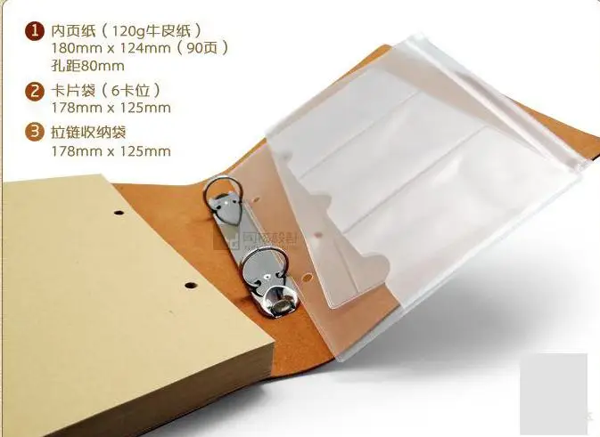 Комплектация: 1 Обложка для книг, 1 крафт-бумага (90 листов), 1 карман для карт (2 отверстия),1 карман на молнии(2 отверстия).
